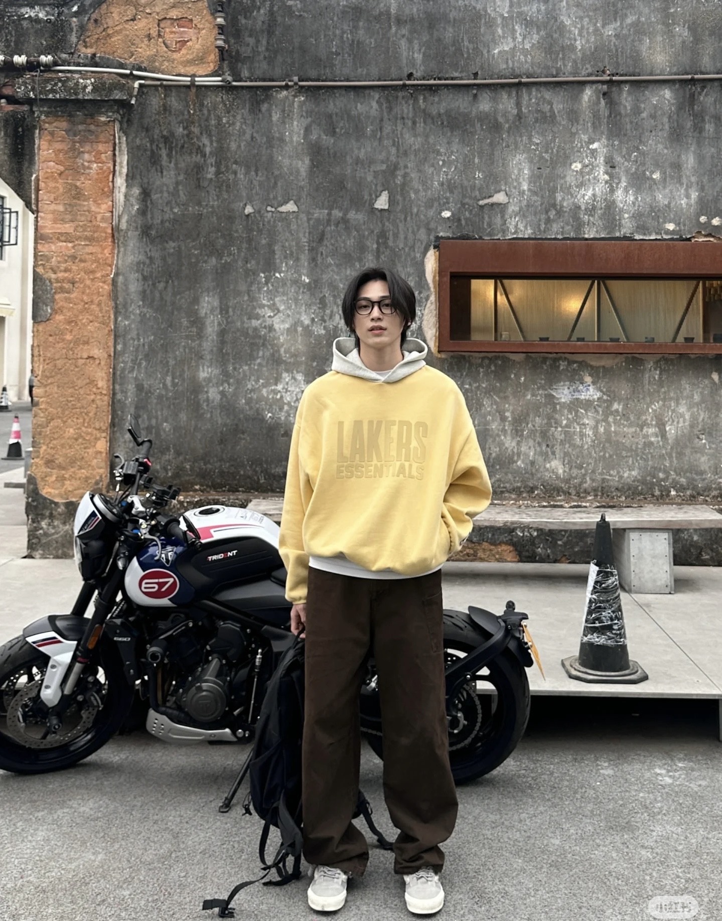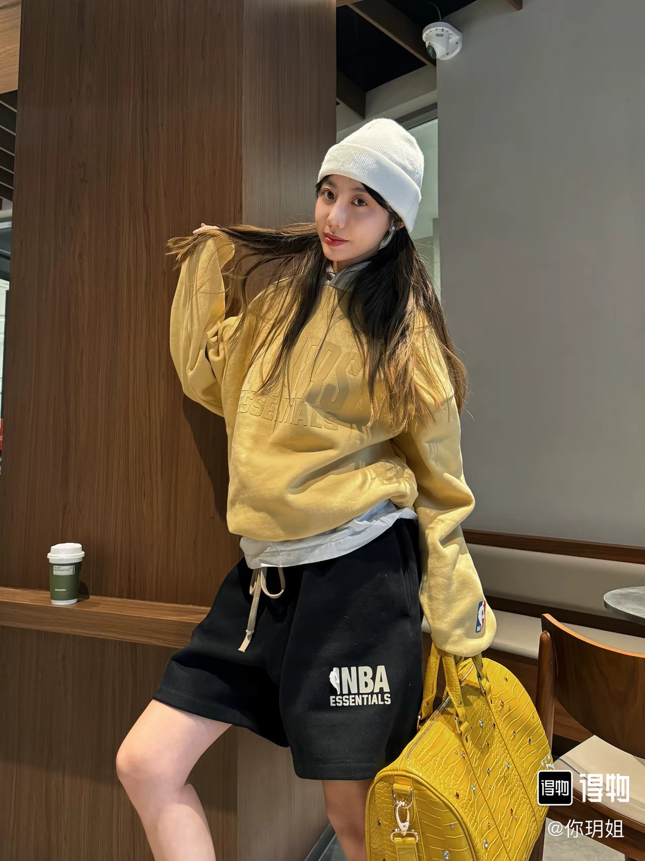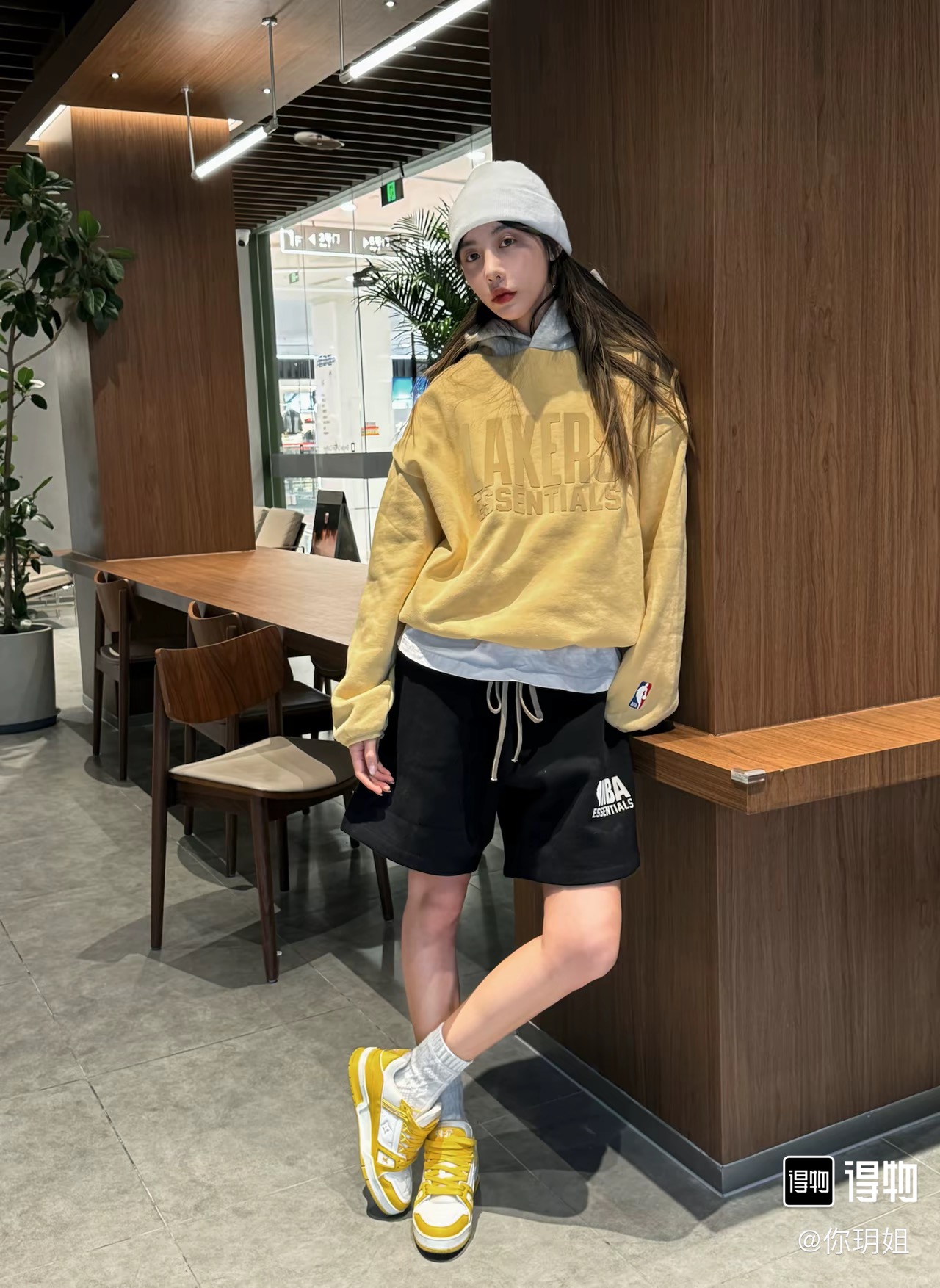 P173 💰 Fear of God Essentials x NBA 联名款 SS25 NBA-allstar PULL OVER HOODIE - LAKERS 洛杉矶湖人队 美式重磅字母印花图案拼接连帽卫衣 男女同款 黄色 S.M.L.XL