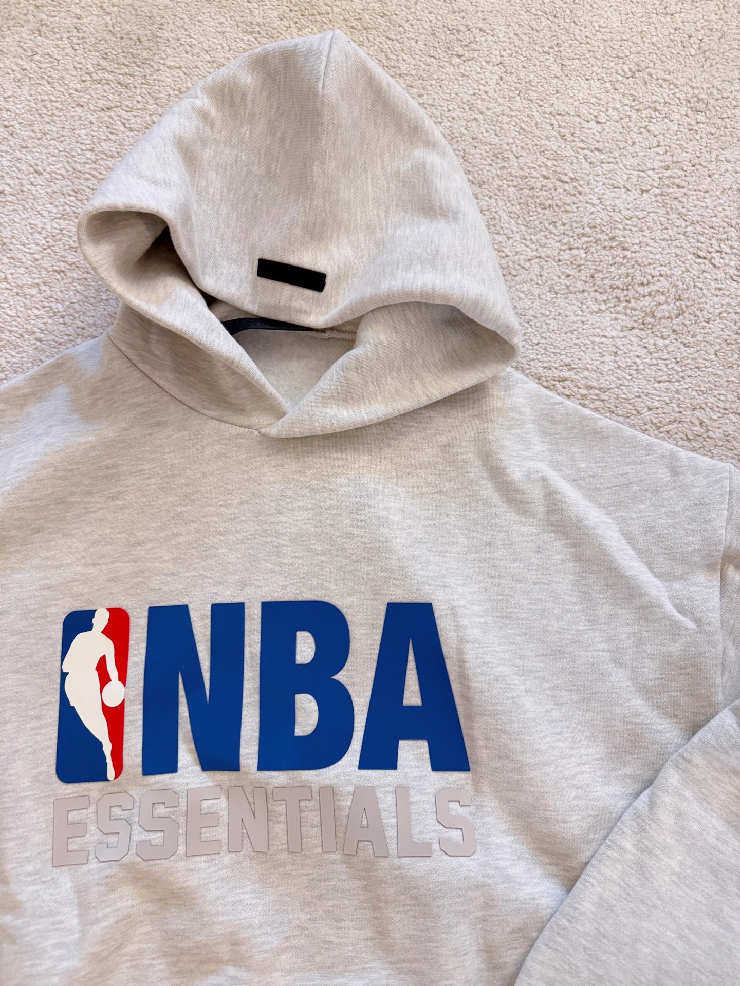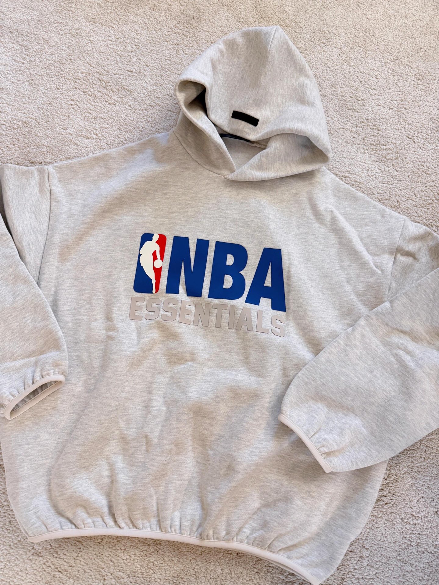 💰Fear of God 复线Essentials x NBA 联名款 FW25 Essentials NBA Hoodie 胸前字母logo植绒印花连帽卫衣:强强联手、当街头潮流遇上篮球热血,Essentials 与 NBA 的联名带帽卫衣横空出世,开启时尚新篇。从设计上看,卫衣以经典版型呈现,宽松有度,无论是日常出行还是运动休闲,都能给予身体舒适的包裹感。胸前那标志性的 NBA 标志,色彩鲜明且极具辨识度,与 Essentials 简洁的品牌字体相互映衬,袖口、下摆全部包边处理、巧妙融合了两大品牌的特色元素,彰显独特身份。