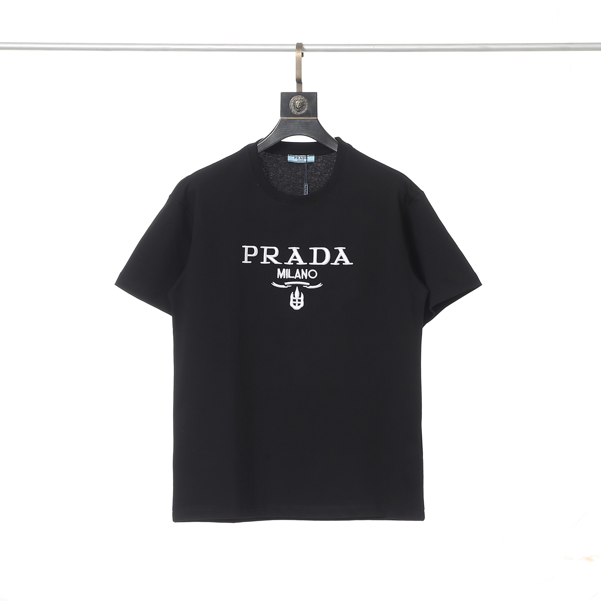 P145 新款 长年有货 🌸 普拉达Prada 短袖圆领T恤 280g 纯棉 手感质感都极完美!裁剪设计干净利落!简单又好看!走线做工非常精致!版型效果超赞! 采用进口定制定染面料 时尚不失奢华 品质毋庸置疑 上身效果超赞💂🏿 单品任何年龄阶段都可轻松驾驭 简单大方! 颜色:三标齐全 码数:M,L,xL,xxL