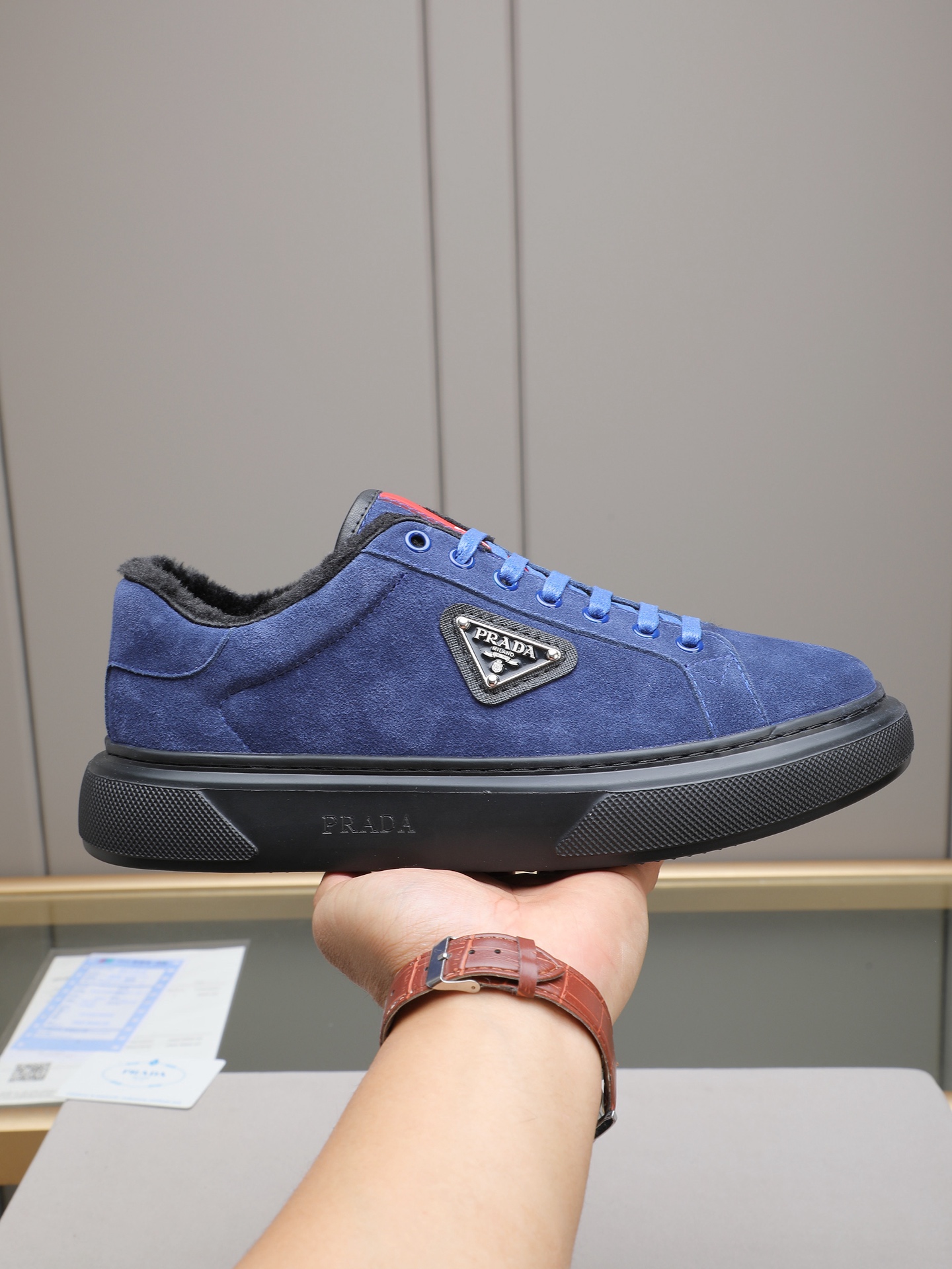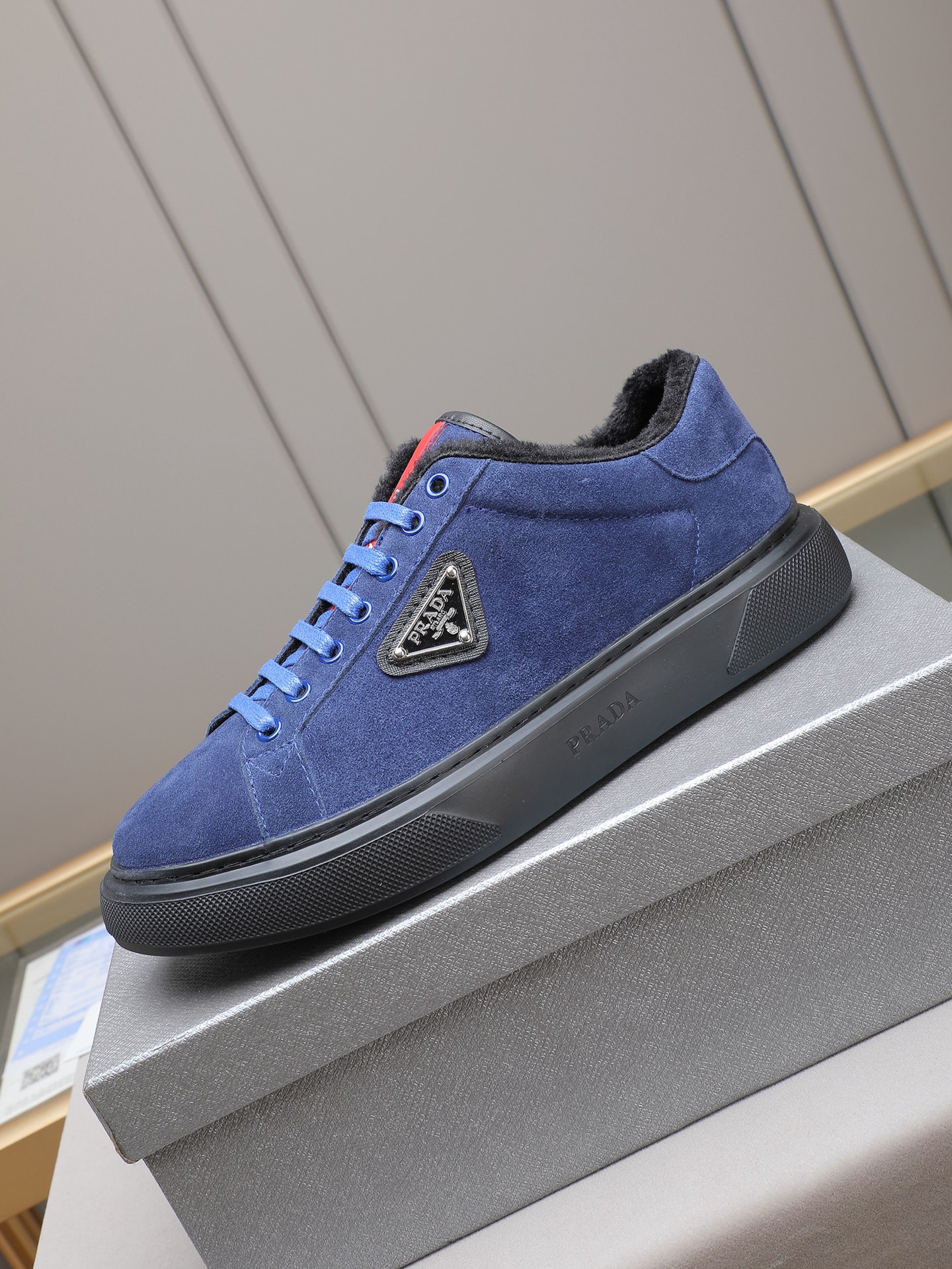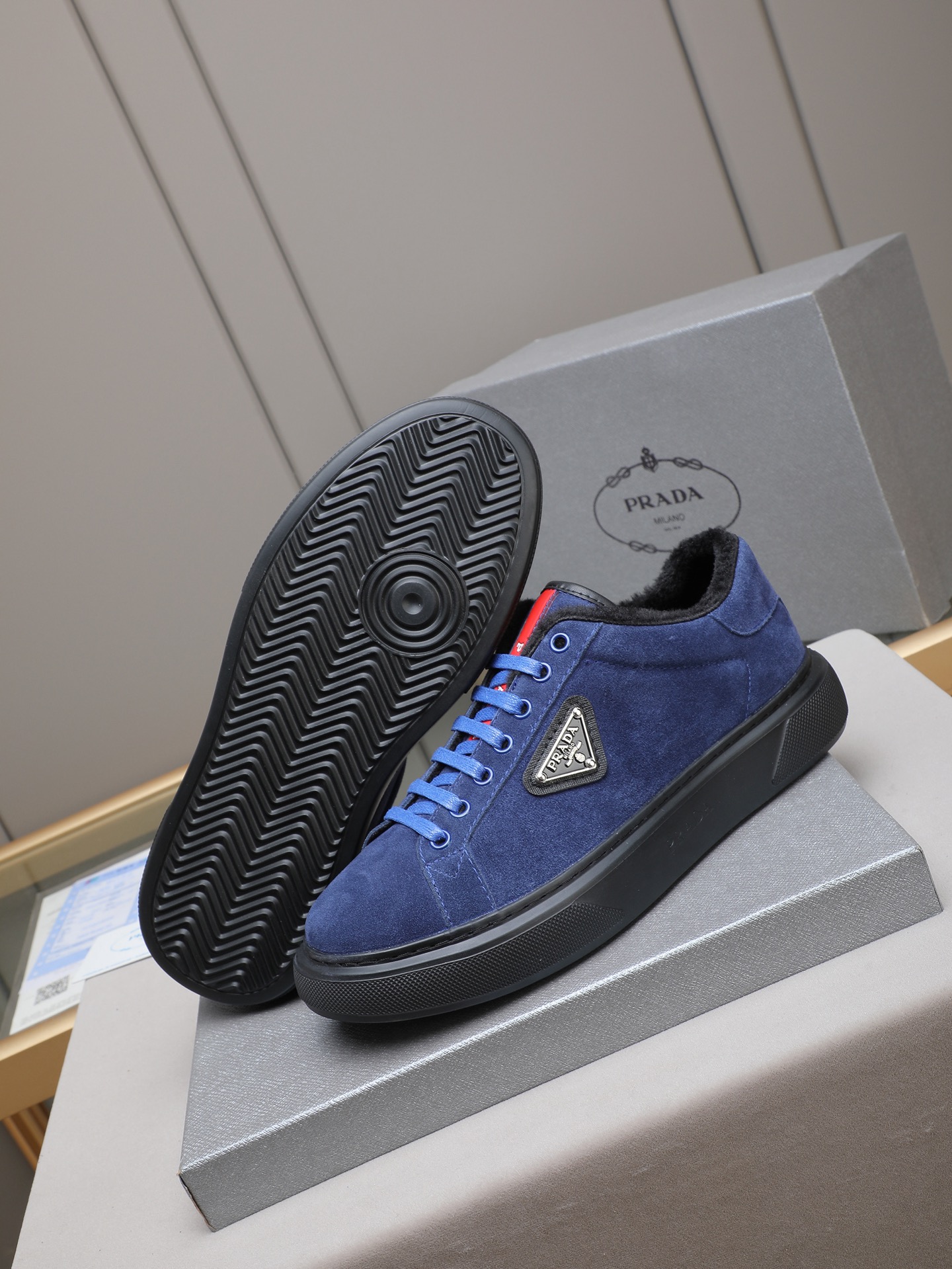 PP300 Prada/普拉达 男士新款休闲鞋,这款鞋面采用进口小牛皮+绒里!外侧饰以P家经典金属三角珐琅徽标,大底采用防滑运动发泡超轻大底,上脚脚感很好,洋气时髦单品!四色选! Size:38-44(45定做)