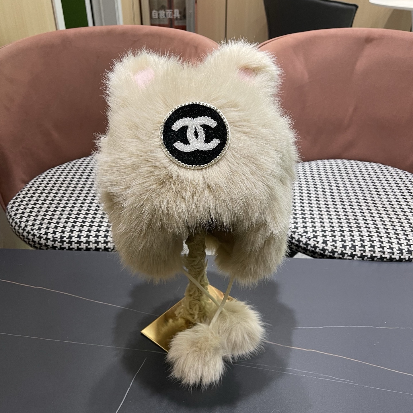 P125 香奈儿CHANEL雷锋帽子女秋冬狐狸毛绒加绒加厚保暖耳朵防寒护耳包头帽潮