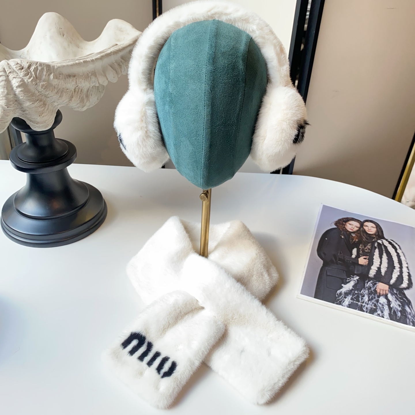 p耳罩50 围脖75¥ 2️⃣5️⃣ꫛꫀꪝ 秋冬新款 ⚜️miumiu人造毛保暖围脖/耳罩 💫时尚明星同款 🛒白色 黑色