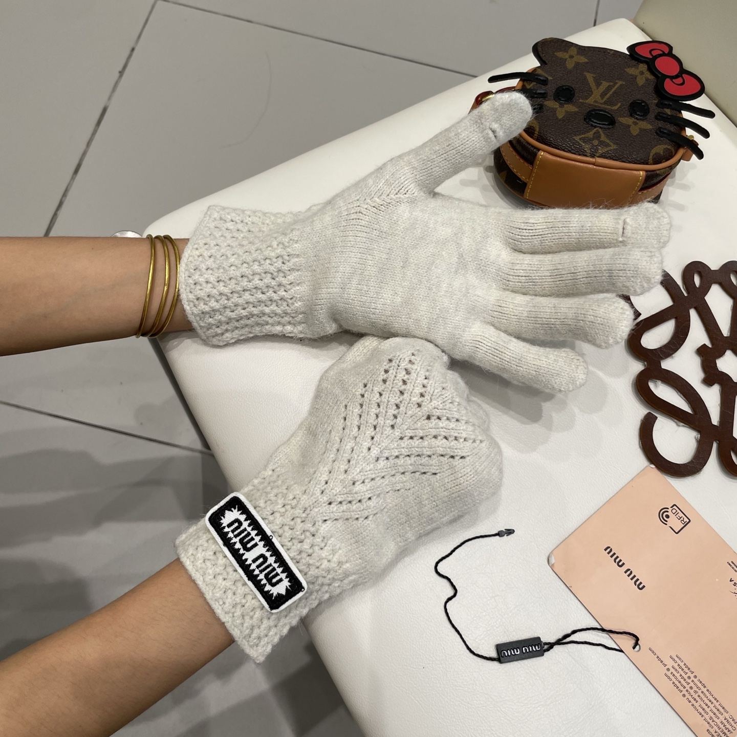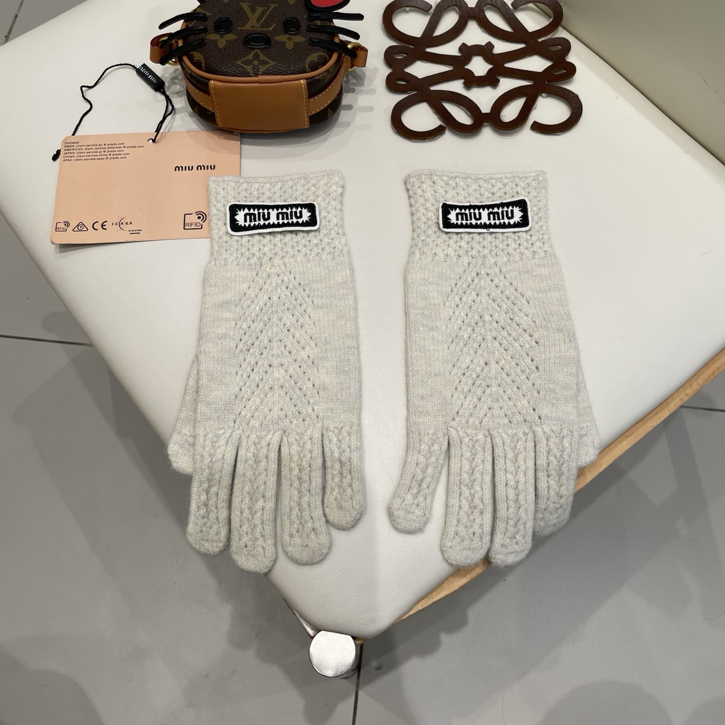 P120 缪缪miumiu纯色毛线羊毛针织手套女冬柔软软糯保暖可触屏露二指分指骑行车