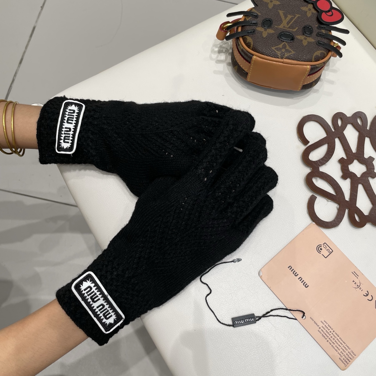 P120 缪缪miumiu纯色毛线羊毛针织手套女冬柔软软糯保暖可触屏露二指分指骑行车