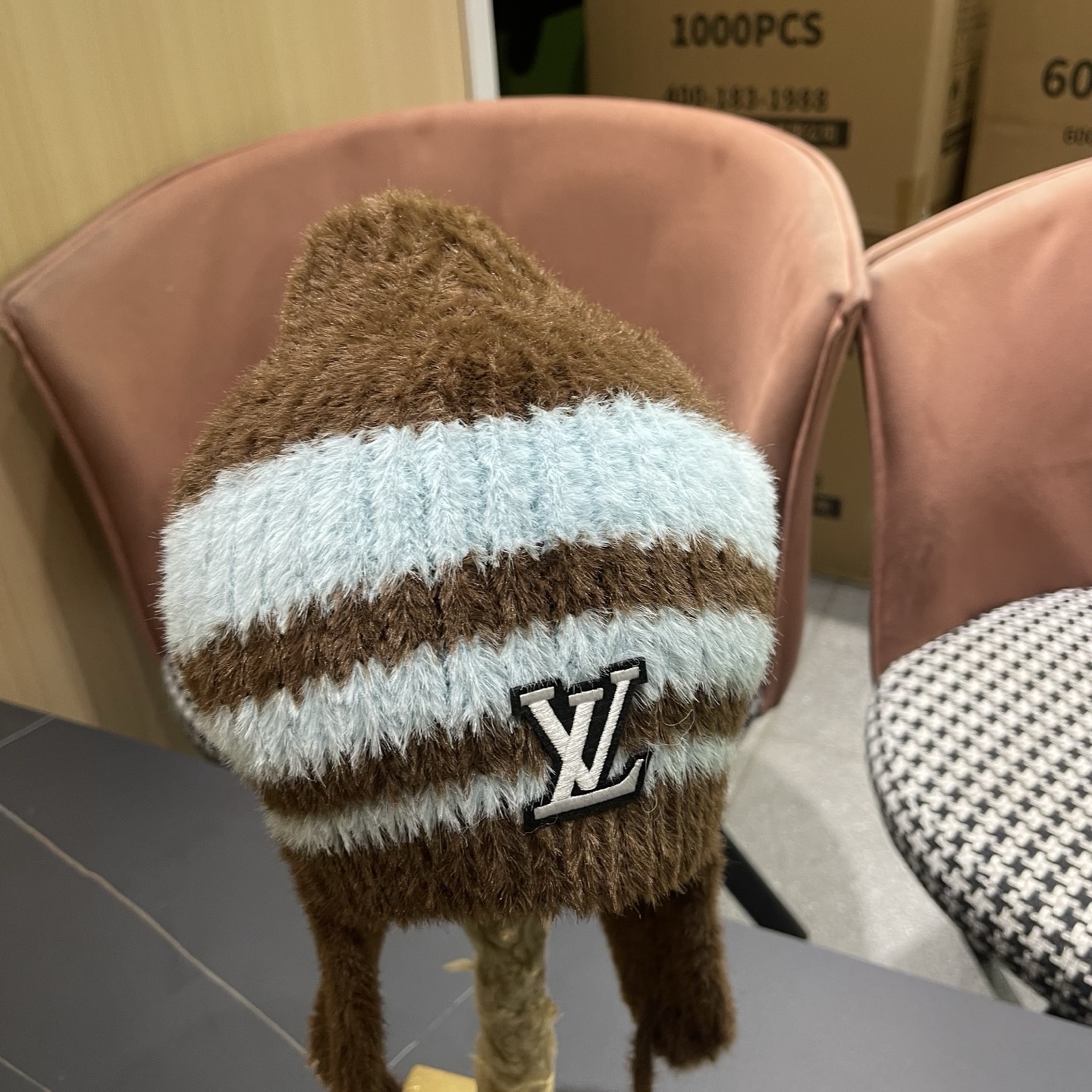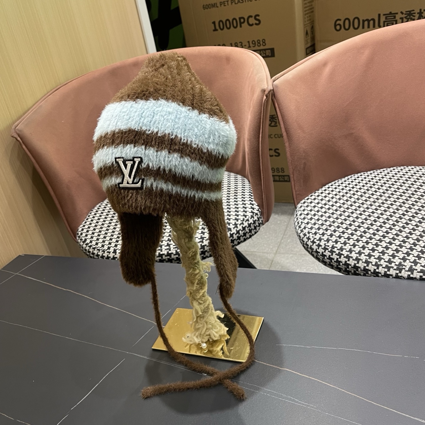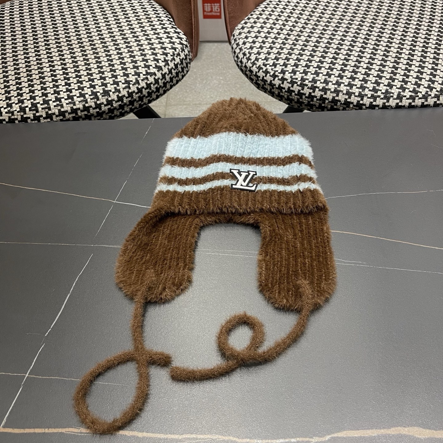 p80 Lv路易威登 日系复古条纹撞色护耳毛线帽女秋冬保暖学生百搭显脸小针织套头帽
