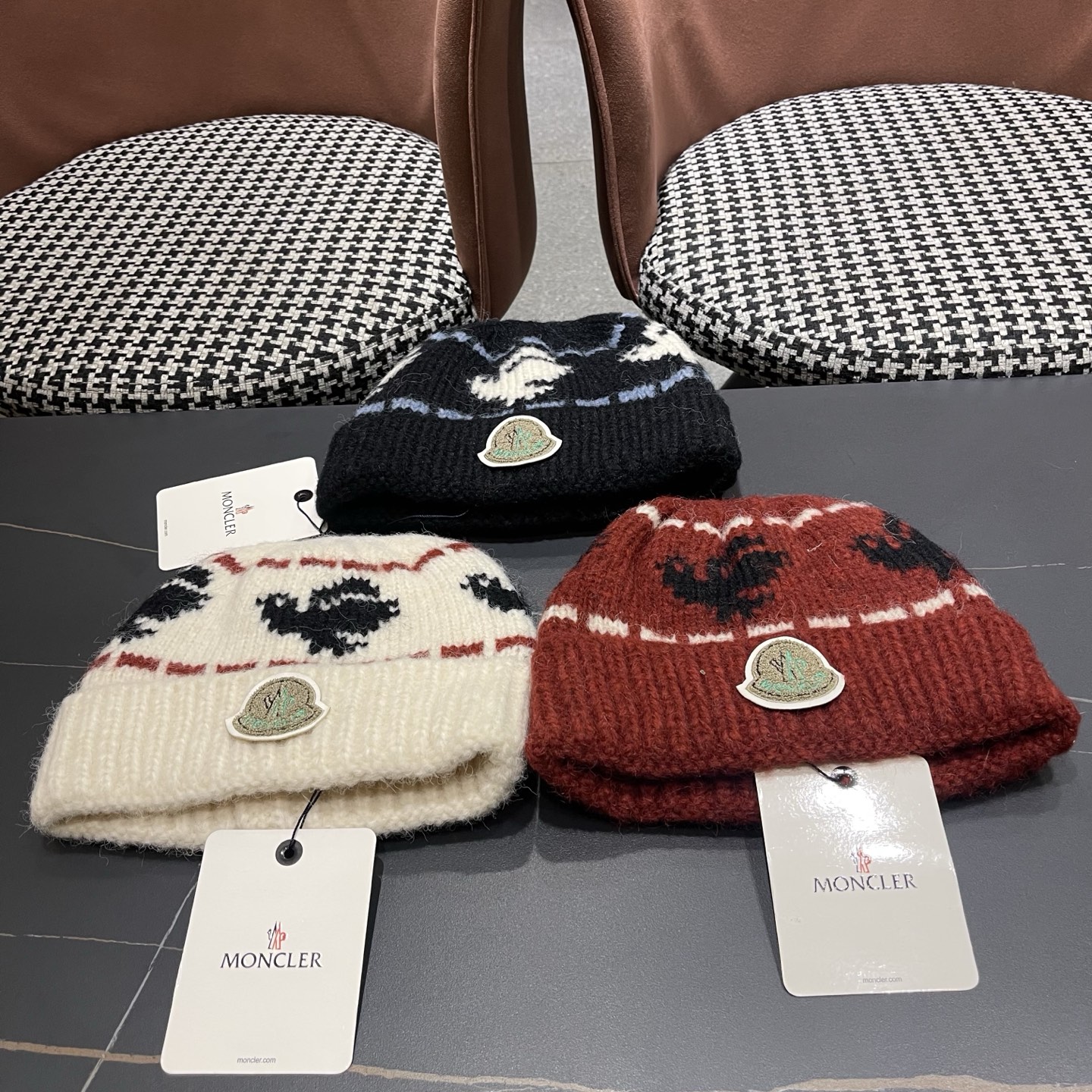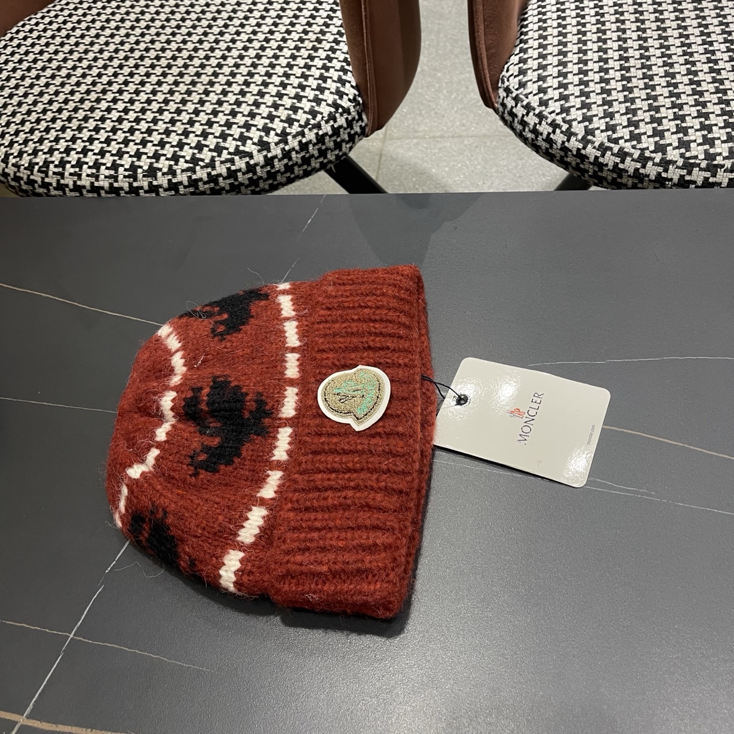 p75 蒙口Moncler 新款费尔岛提花复古针织帽女秋冬户外加 厚保暖时尚百搭套头毛线帽