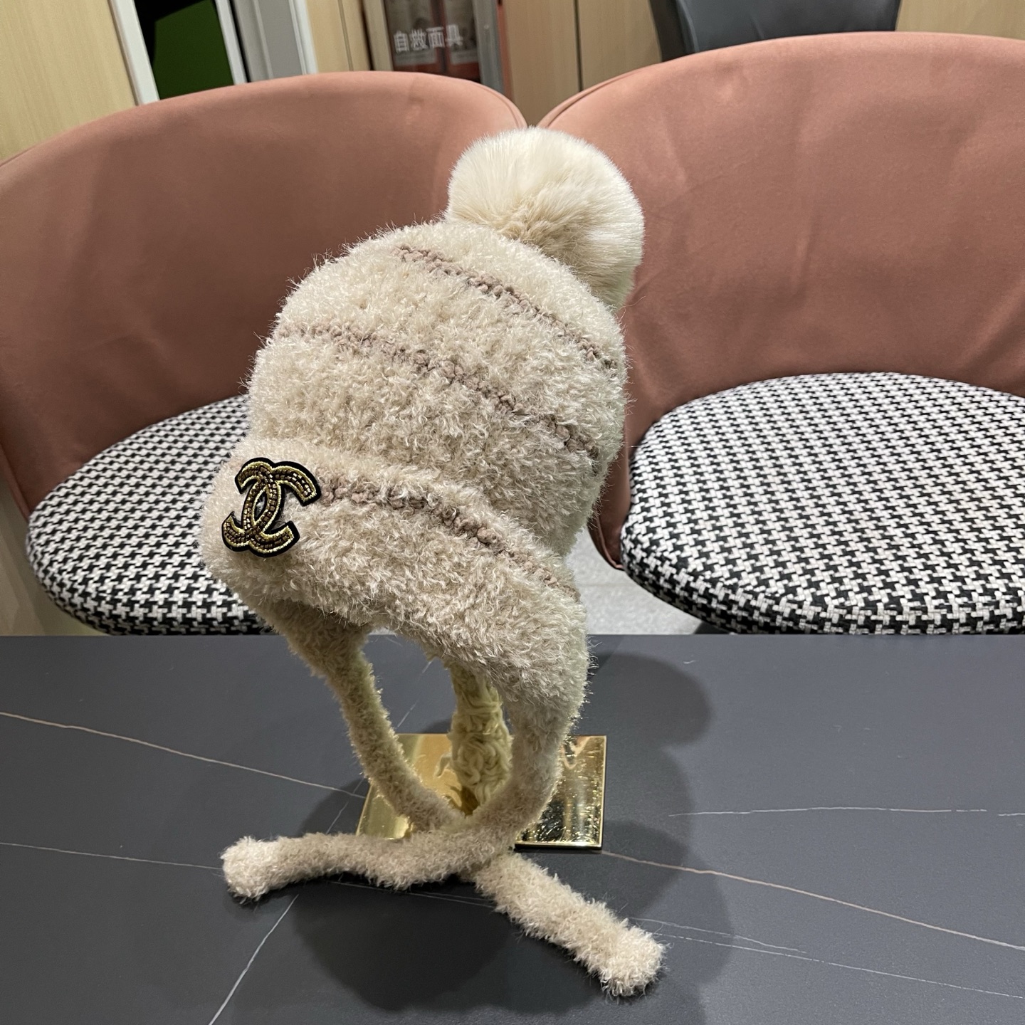 p80 香奈儿CHANE2025新款秋冬季毛绒帽子女加厚保暖护耳针织帽百搭显脸小包头帽潮