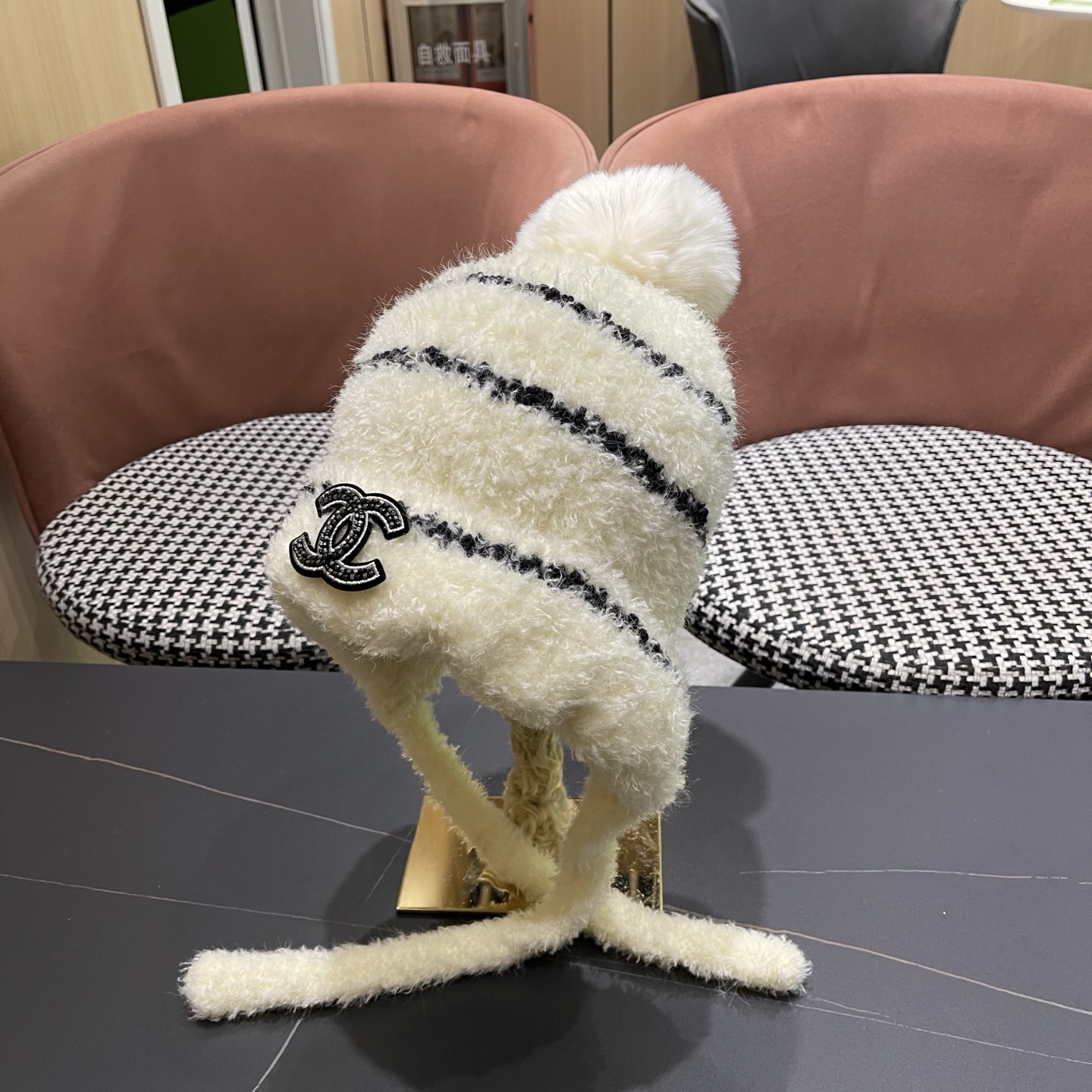 p80 香奈儿CHANE2025新款秋冬季毛绒帽子女加厚保暖护耳针织帽百搭显脸小包头帽潮