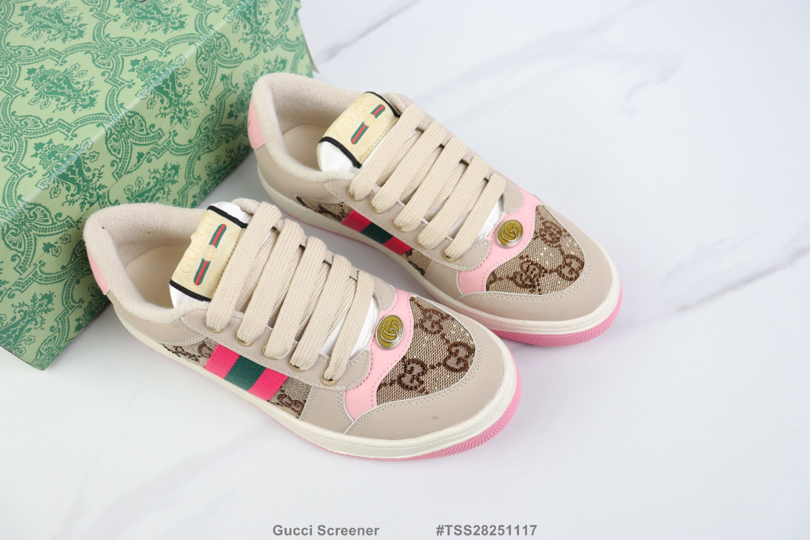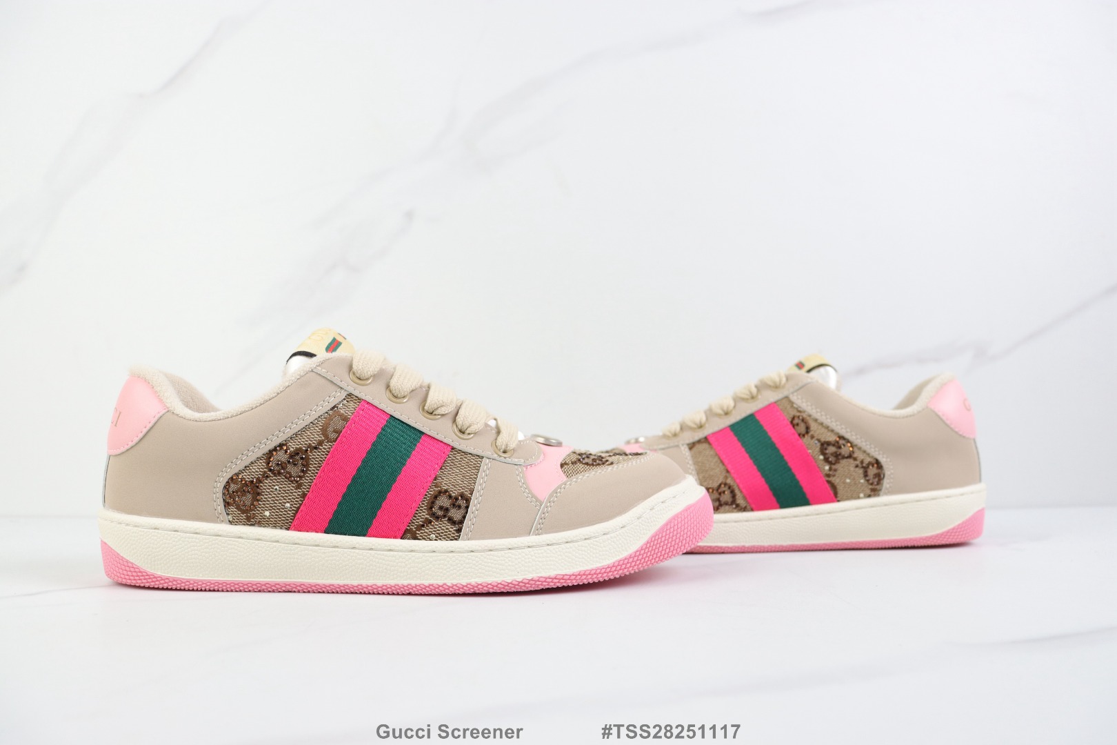 💰P140🔺Gucci Screener 古驰低帮经典复古舒适轻便休闲鞋 小蜜蜂 绿盒版本 牛皮材质 时尚舒适 Size:35-40码 #TSS28251117