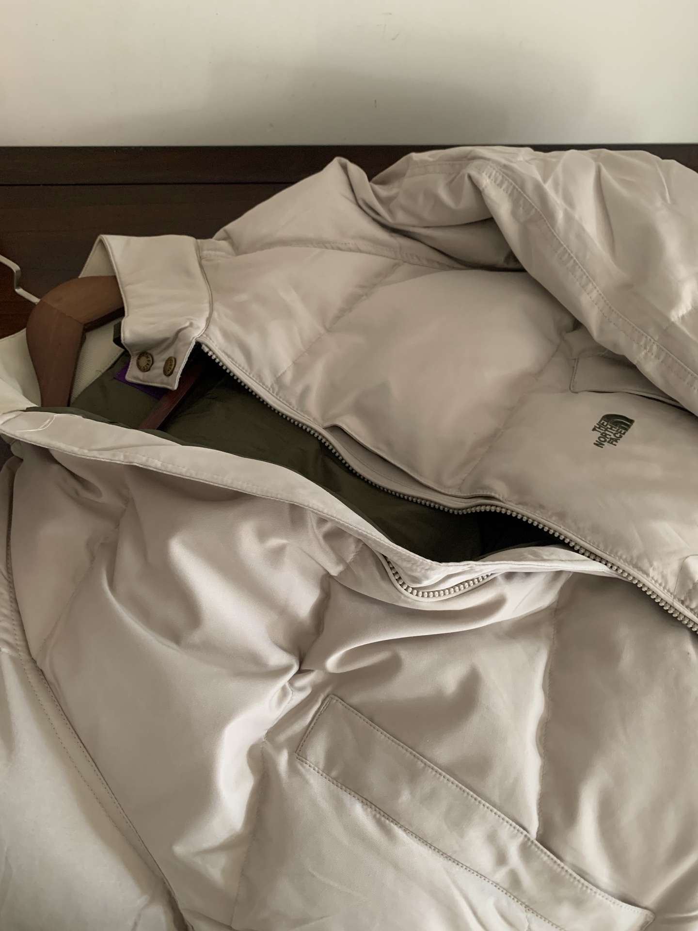 米色细节. 新品上架! 工厂放货💰300 THE NORTH FACE 北面紫标系列PURPLE LABEL 纯色Logo刺绣棒球羽绒服男女同款 填充:90白鸭绒 尺码: S M L XL