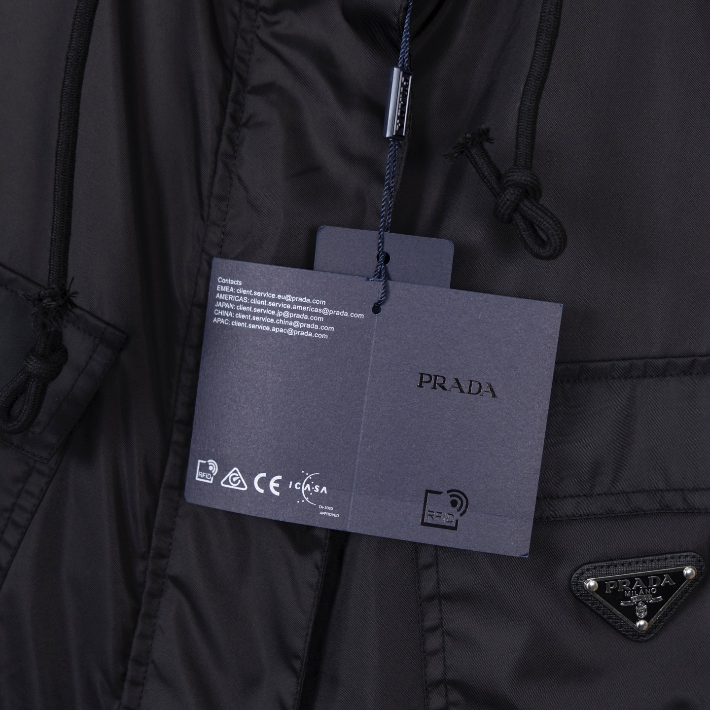 P320 顶级版本Pra*新品上架 腰带连帽夹克外套 定制YB进口冲锋尼龙材质 挺括有型 隐藏式拉链按扣调节设计 方便穿脱 胸前对称翻盖口袋搭配单侧字母三角标点缀装饰 彰显品牌调性 袖口松紧➕抽绳衣摆处理 增添造型层次感 双扣腰带融入勾勒身形 上身更为显瘦时髦 面辅料开发 连帽抽绳冲锋外套剪裁 日常通勤时尚穿搭首选 系列开发 可随意适