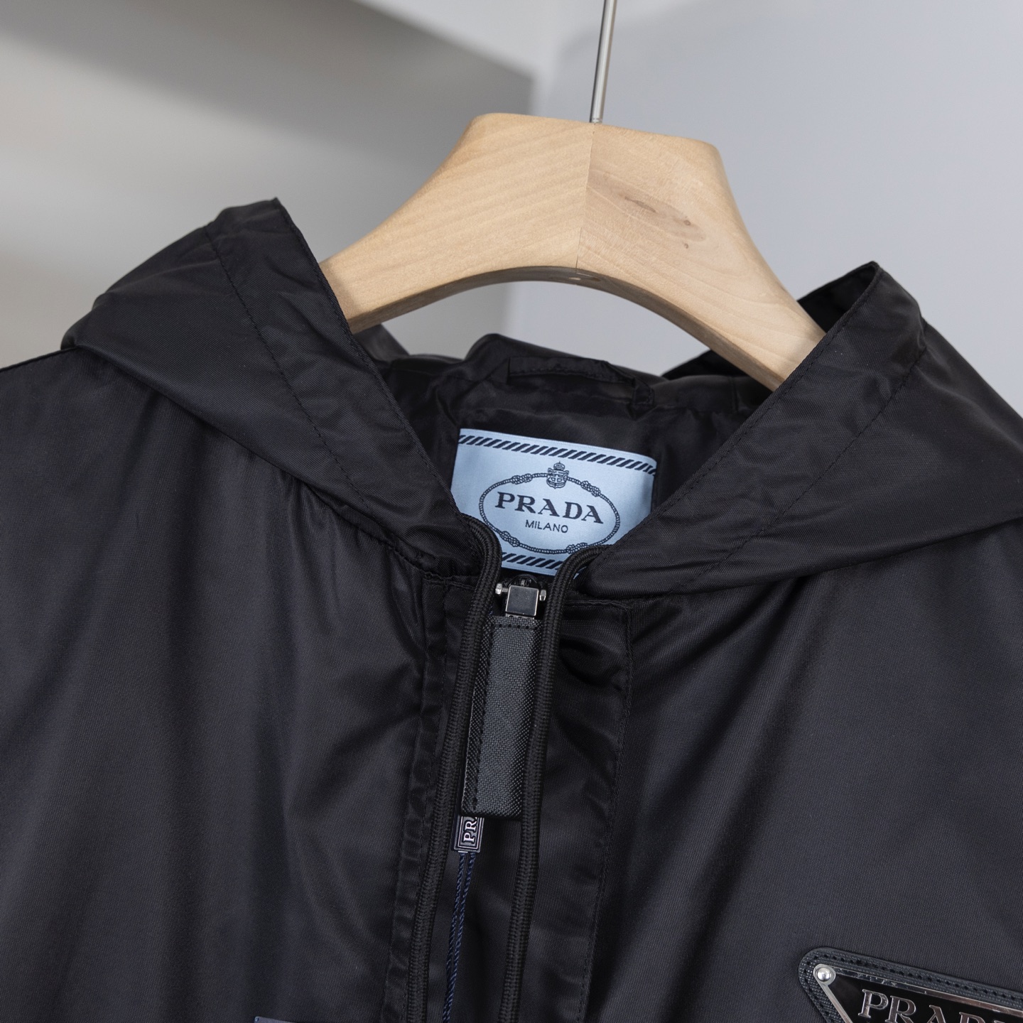 P320 顶级版本 普拉达【Prada】女款收腰风衣 P家早秋款连帽收腰风衣 超酷的风衣,纯黑色底色,搭配当下最流行的倒三角logo设计! 再极简设计也无法忽视它的高级炫酷美! 质感极好 不是市面版本的廉价感! ⚠️外层客供进口尼龙面料 手感爽滑舒适,挺阔有型 防水 具有独特的记忆特性 面料的性能稳定性 腔调十足~ 客供拉链 质感厚实,刻字清晰,很有亮点和设计点的设计非常精致,配合面料细腻,质感一流。 连帽收腰设计,穿着有型,面料易于打理,手感顺滑,具有良好的透气性和舒适性!与时尚兼顾的一款!! -