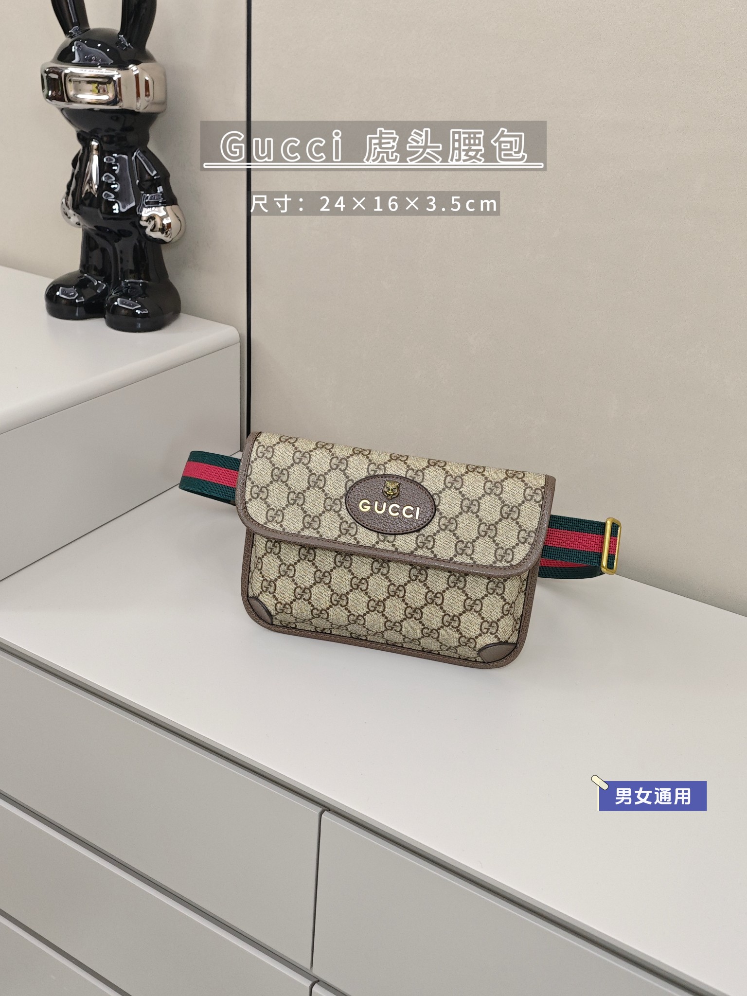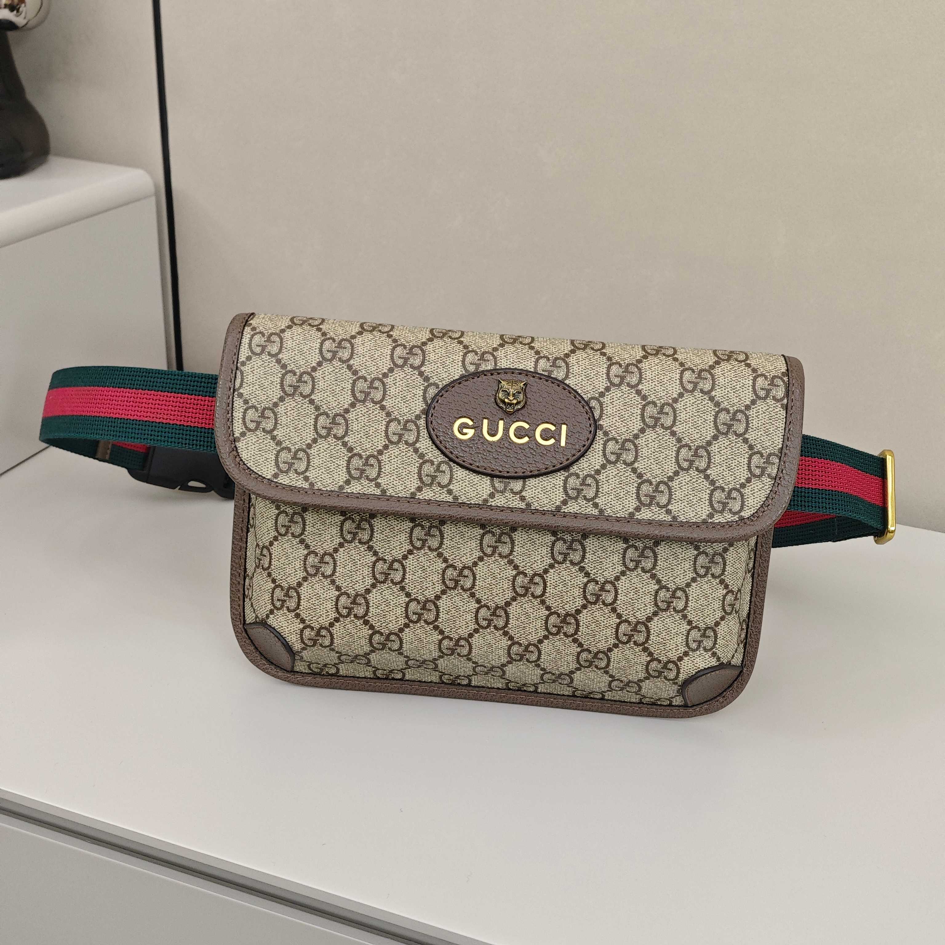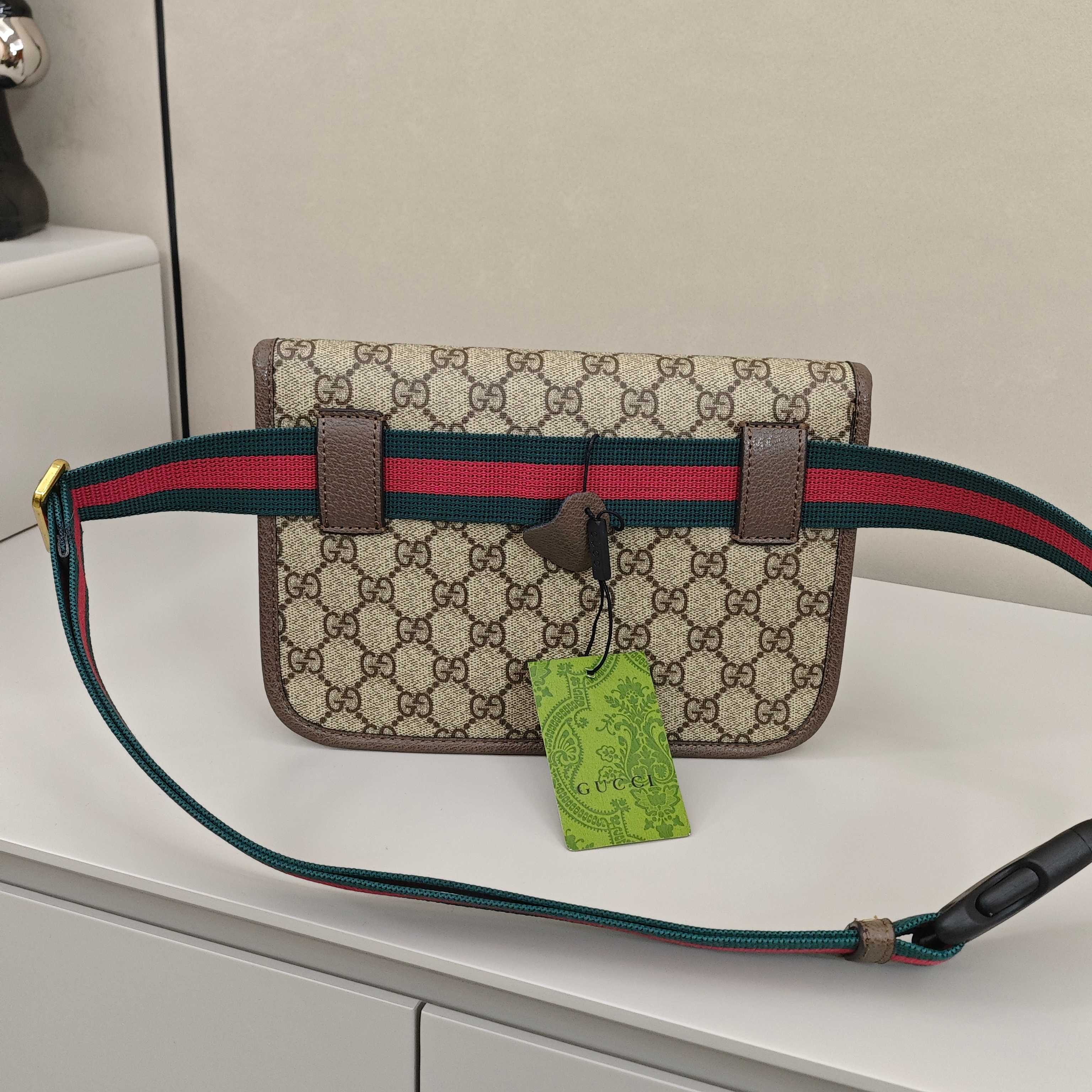 Gucci虎头腰包💰190 尺寸:24×16×3.5cm《男女通用》 简介:吸磁翻盖开合,内部空间可放下手机充电宝等日常随身物品,背带可调节长短,轻便实用。