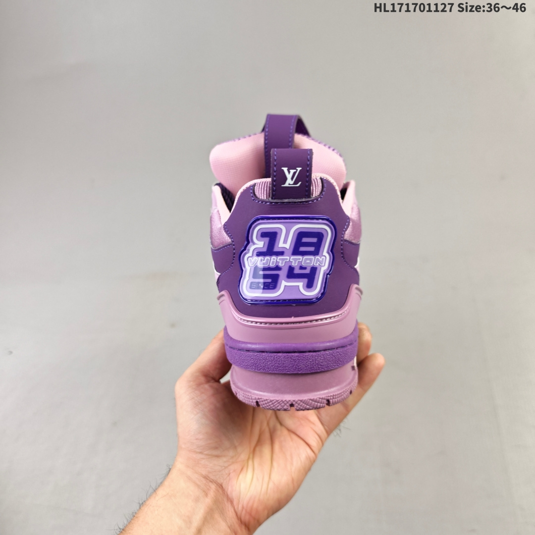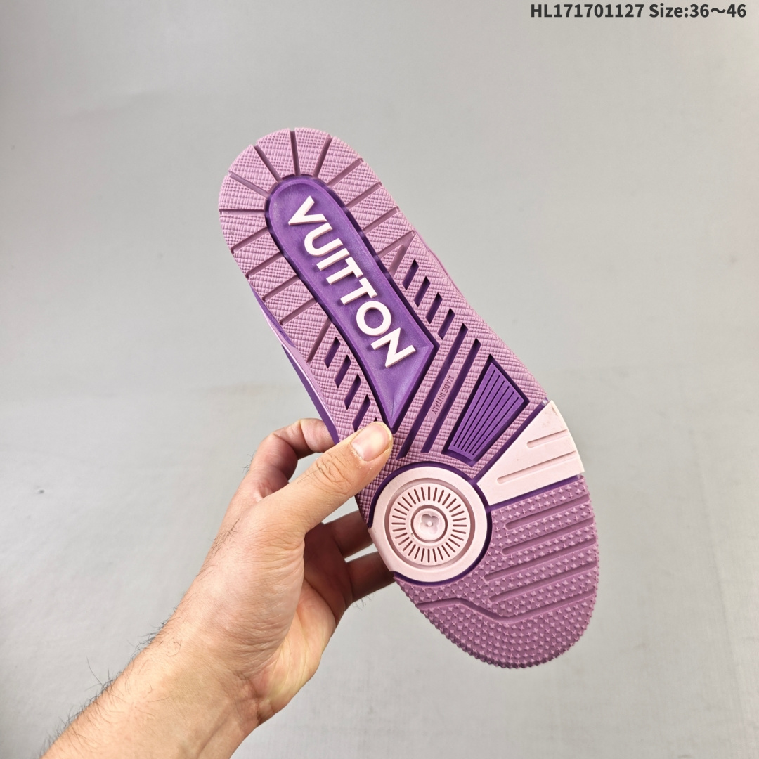 💰170 路易威登 Louis Vuitton LV路易威登板鞋 时尚运动鞋潮厚底增高男女鞋。舒适防滑底和百搭性霸屏整个时尚娱乐圈,细节调整完美主义!采用柔软帆布皮革拼接鞋面,独家开模大底, 侧边采用3D打印标志性Logo 尽显贵族时尚气息,配带正品全套包装。全新LV路易威登Louis vuitton Trainer Sneaker Low 休闲运动文化百搭板鞋。 编码:HL171701127 Size:36~46