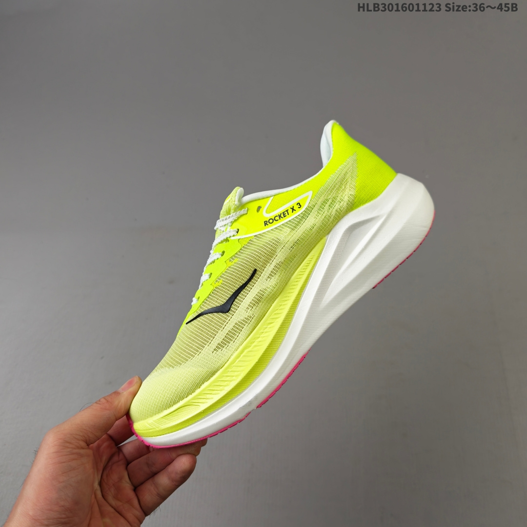 集合💰160 HOKA/霍卡 原楦开发纸版楦型,采用高科技合成网纱鞋面材质,搭载轻量化PEBA超临界发泡中底,脚感更软弹,外置防滑耐磨橡胶底片❗️畅快回弹敢跑出色,美国新兴跑鞋品牌Hoka One One Men Rocket X 3 Low 火箭X3代系列低帮马拉松竞赛厚底轻量透气网纱休闲运动慢跑鞋 编码:HLB301601123 Size:36~45B