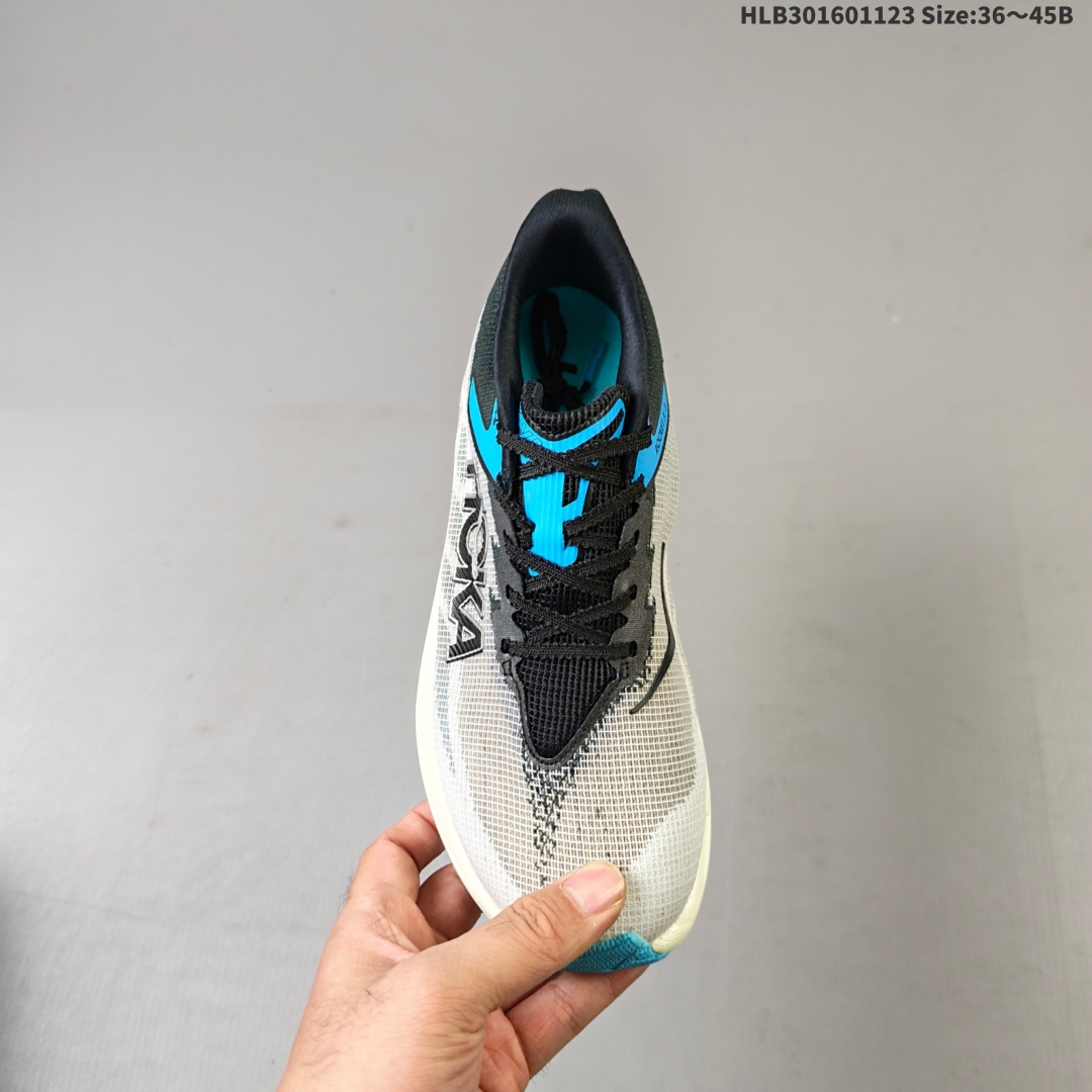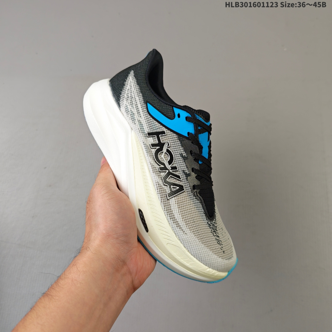 💰160 HOKA/霍卡 原楦开发纸版楦型,采用高科技合成网纱鞋面材质,搭载轻量化PEBA超临界发泡中底,脚感更软弹,外置防滑耐磨橡胶底片❗️畅快回弹敢跑出色,美国新兴跑鞋品牌Hoka One One Men Rocket X 3 Low 火箭X3代系列低帮马拉松竞赛厚底轻量透气网纱休闲运动慢跑鞋 编码:HLB301601123 Size:36~45B