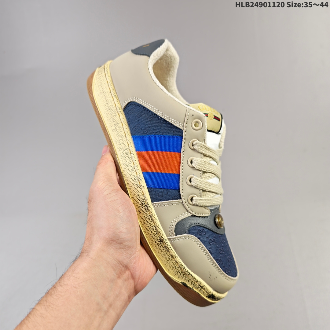 集合💰90 古驰 Gucci Distressed Screener sneaker 古驰小脏鞋系列 官方同步 经典原型复古百搭做旧小脏板鞋复古学院风 怀旧版 编码:HLB24901120 Size:35~44