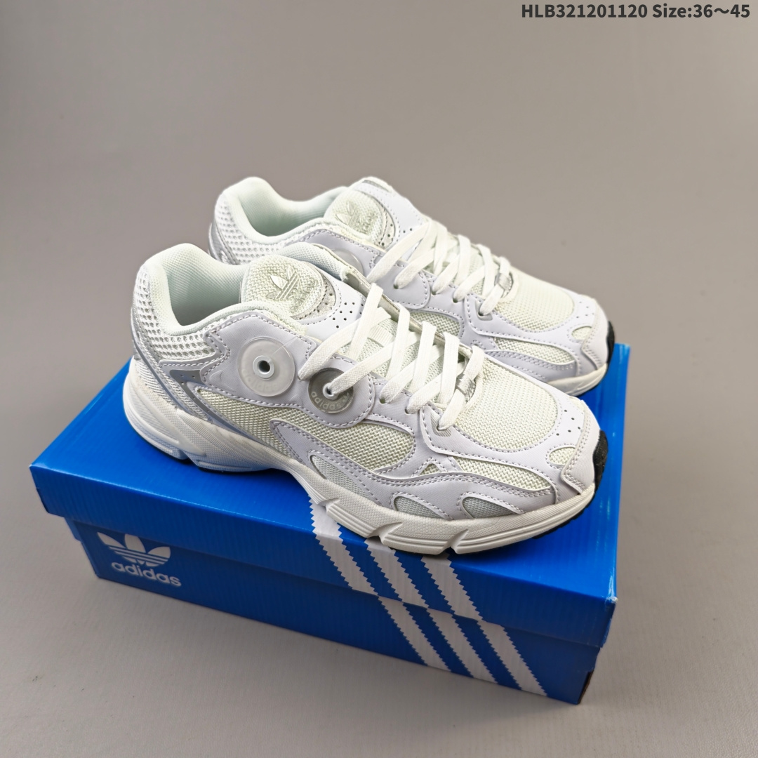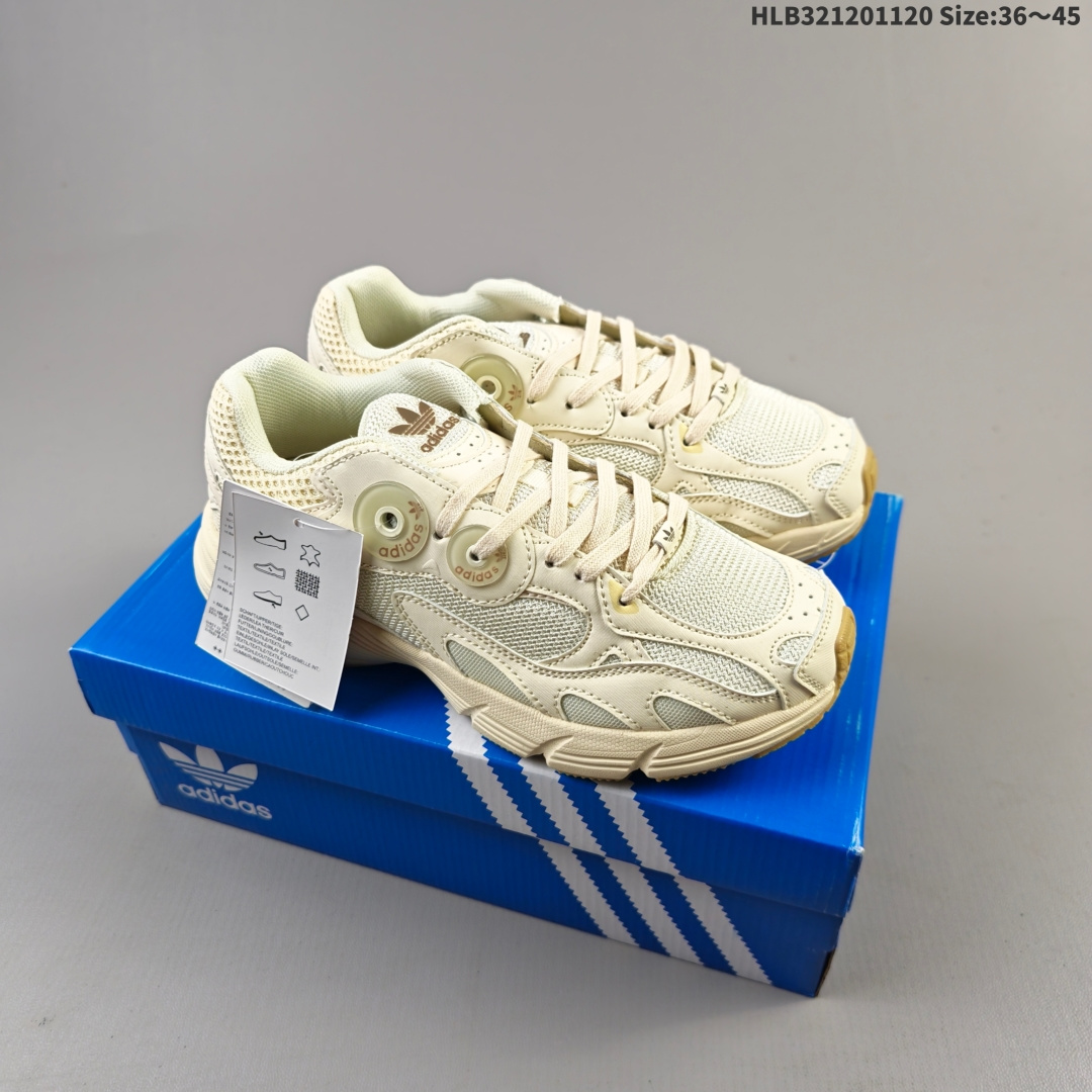 集合💰120 阿迪达斯Adidas Astir 耐磨复古运动休闲鞋 鞋款灵感来自2000年代的跑步款式 鞋面和超大号孔眼进行更新复古色系搭配经典蓝白色 金色线条贯穿鞋身 增强鞋整体的流线感拼接设计 整体更显得有层次感,更有老爹鞋的味道网面透气设计 夏日出门也不会感到闷脚既舒适又透气带点稍微厚底的中底特殊材料 上脚偏软非常显高显瘦 休闲运动都可以搭配 货号GW4341 #HLB321201120 Size:36~45