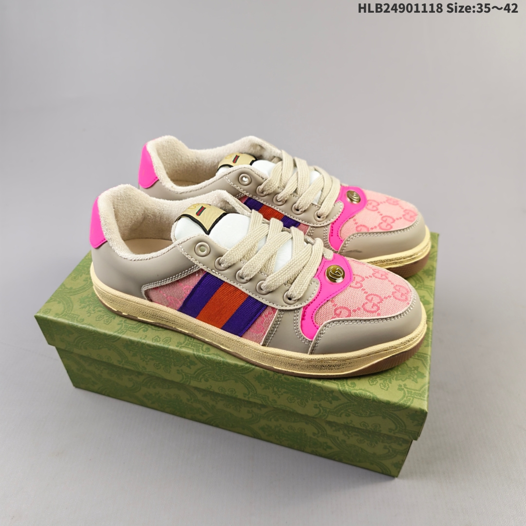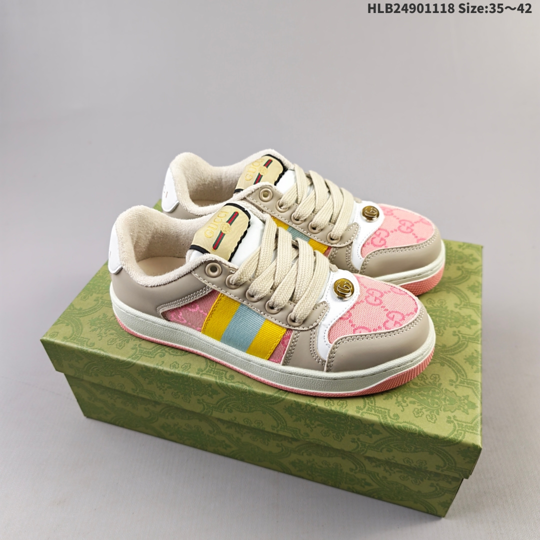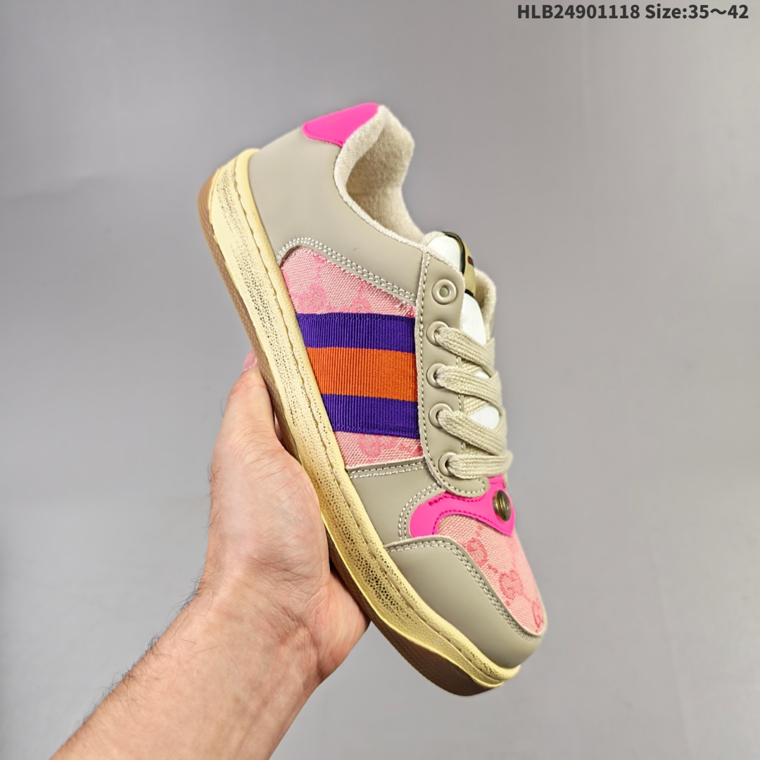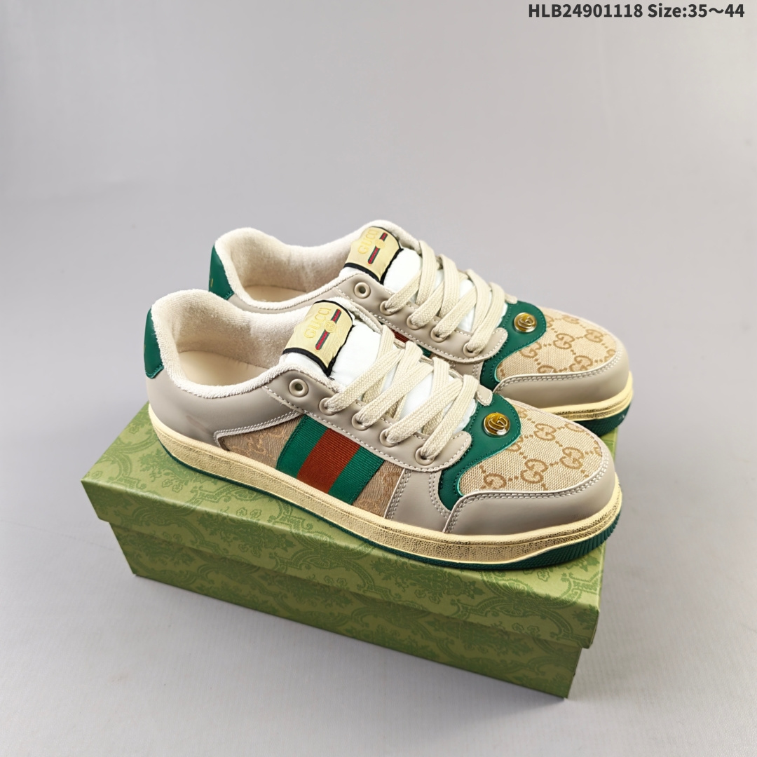 集合💰90 古奇Gucci Distressed Screener sneaker 古驰小脏鞋系列 绿盒版本 经典原型复古百搭做旧小脏板鞋复古学院风 怀旧版 编码;HLB24901118