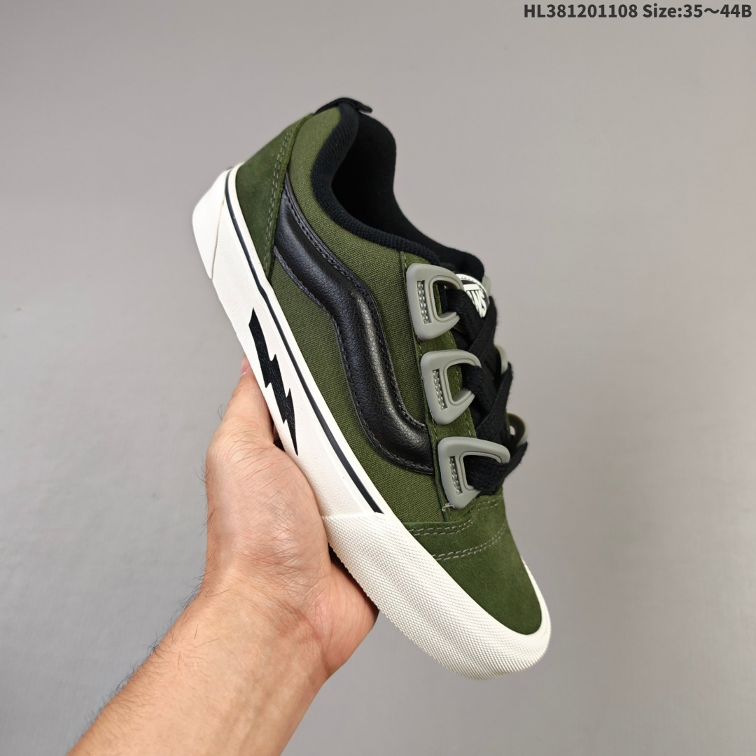 💰120 🔥Vans闪电⚡联名 万斯 橄榄绿面包鞋来啦!! Vans Knu Skool DR 橄榄绿新款闪电面包鞋男女复古秋冬舒适情侣运动滑板鞋 ~闪电设计炫酷十足,面包鞋型复古舒适潮流,运动滑板两不误!穿上它,街头焦点就是你!✨ #潮鞋 #情侣鞋 #滑板鞋 #万斯闪电 尺码:35 36 36.5 37 38 38.5 39 40 40.5 41 42 42.5 43 44HL381201108 Size:35~44B