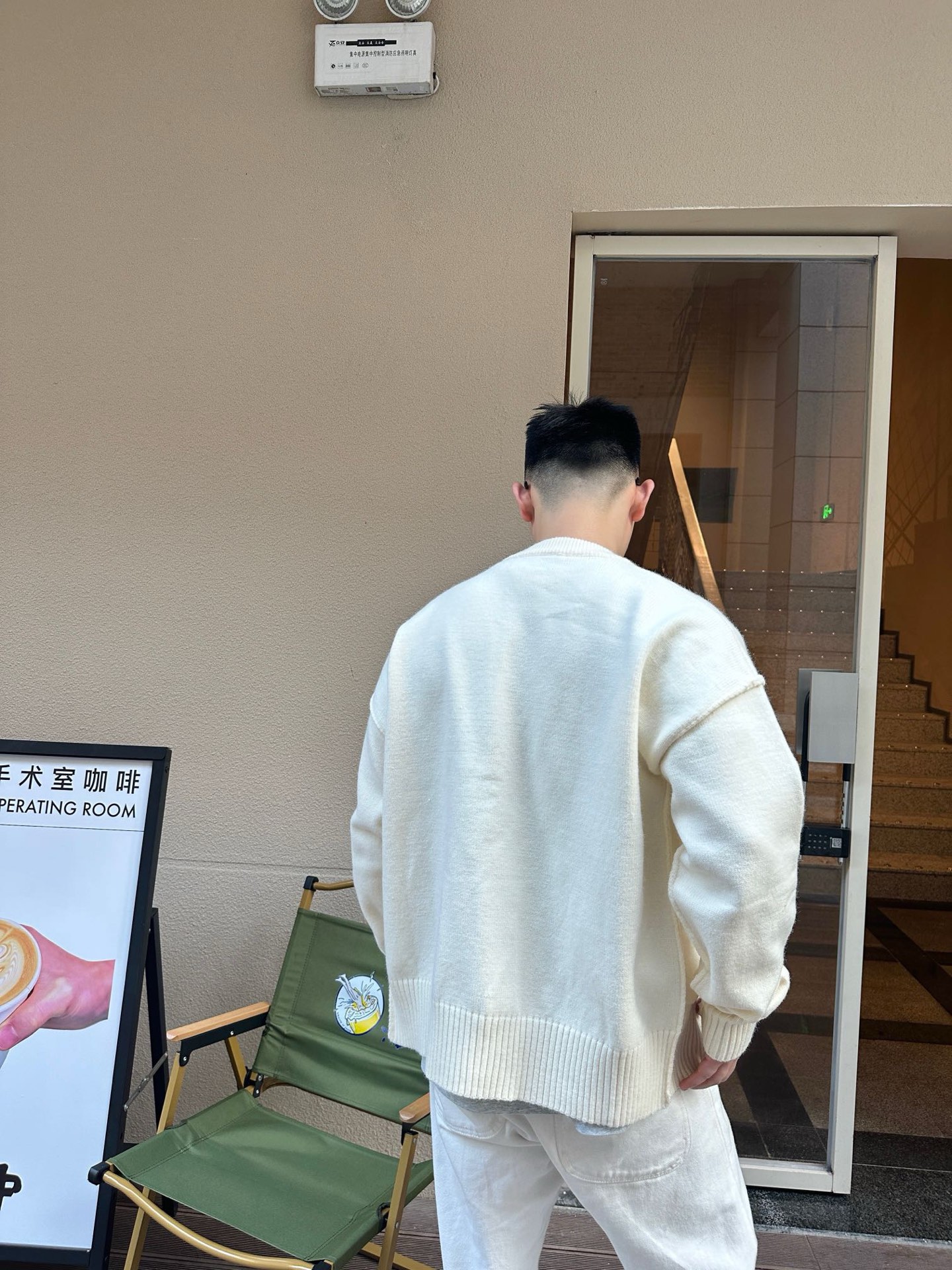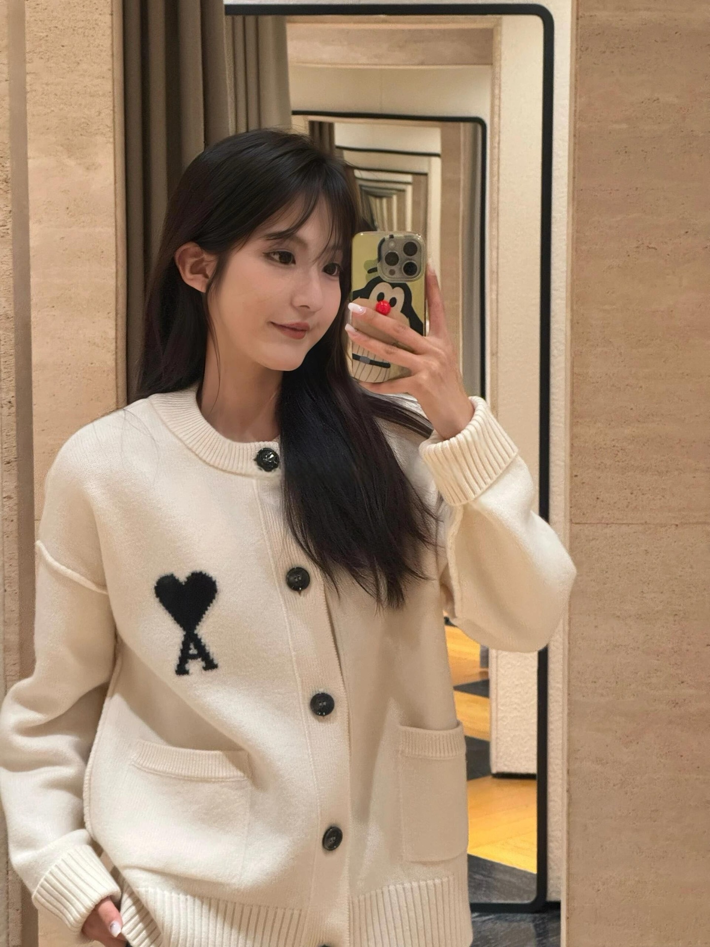 Ami Paris 爱心提花针织圆领开衫毛衣上身效果#