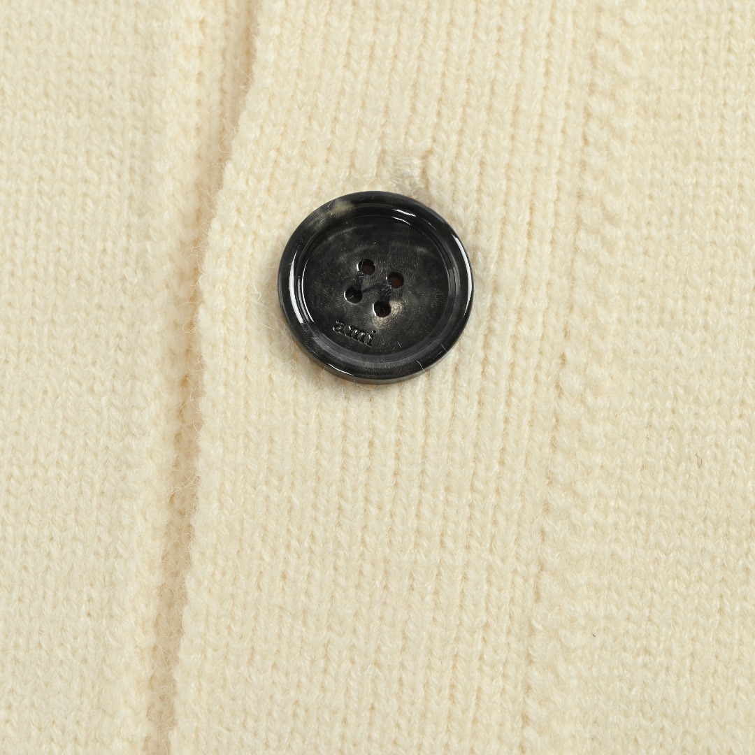 本地自取 💰320 Ami Paris 爱心提花针织圆领开衫毛衣 采用50%羊绒+40%棉+10%锦纶的定制混纺纱线 锦纶的加入提升了服饰手感细腻度和让上身更加挺阔有型。针织毛衣的制作过程极其复杂 纱线到位后 第一步需要在倒毛机上倒毛 第二步加入特制药水进行水洗纱线去除表面杂质 第三步制作成小片后 需要工人在套口机上一根线一根线去对应进行套口 第四步完成成衣后需成衣水洗固定版型与增加手感 最后还要控制整烫的温度定型后再包装出厂。此款式与普通毛衣的套口方法不同 采用了反套工艺 次工艺极其考验工人的手法。此件衣服机器上机时间很慢 采用5针进口STOLL机器 一件衣服高达110分钟 一天22个小时 仅能产出10件成品 大码单件成品重量高达1000G 慢工出细活。爱心部分采用嵌花工艺 经过多次打版调试达到原版效果 极其考验师傅的技术和织造机器的工艺。为了确保纽扣材质大小与原版一致 对原版进行拆解分析 独立定制开模 定做牛角扣 刻字LOGO 高度还原原版 定制原版一致水洗三标 特殊材质水洗唛 正反面尺码标 全部细节都拿下。男女同款 洗涤建议手洗或者轻柔机洗 机洗请单独单件套洗衣袋轻柔机洗 不能烘干和热水洗涤 不能长时间浸泡暴晒 平铺晾干 不能直接挂晾 正确的洗涤方式可使衣服使用寿命延长 Size:S-XL