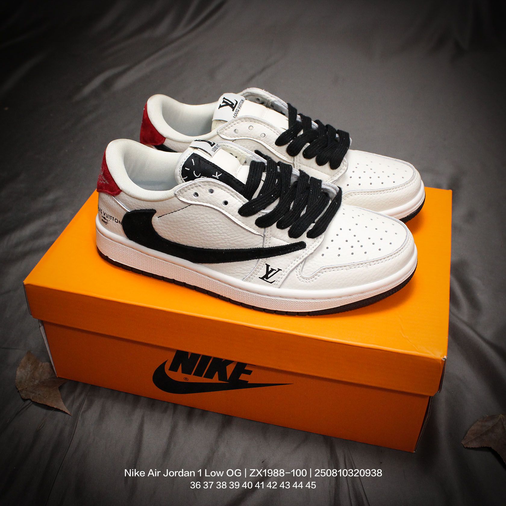 🈴💰110 Jordan/乔丹 AJ1倒钩系列 男女鞋真标半码制,采用软质牛剖革组合猪巴革鞋面材质,缜密拉帮中底布,鞋垫嵌EVA缓震物料及背胶,内置气垫及耐磨橡胶大底❗️当红嘻哈歌手特拉维斯·斯科特定制联乘法国顶级高奢品牌·路易威登Louis Vuitton x Travis Scott x Nike Air Jordan 1 Low OG SP"Beige/Grey/ LV"AJ1乔丹一代经典低帮文化百搭休闲运动篮球鞋“TS联名米白棕深灰LV印花倒钩 ZX1988-100 类型:男女鞋 码数:36 37 38 39 40 41 42 43 44 45 编码:250810320.938