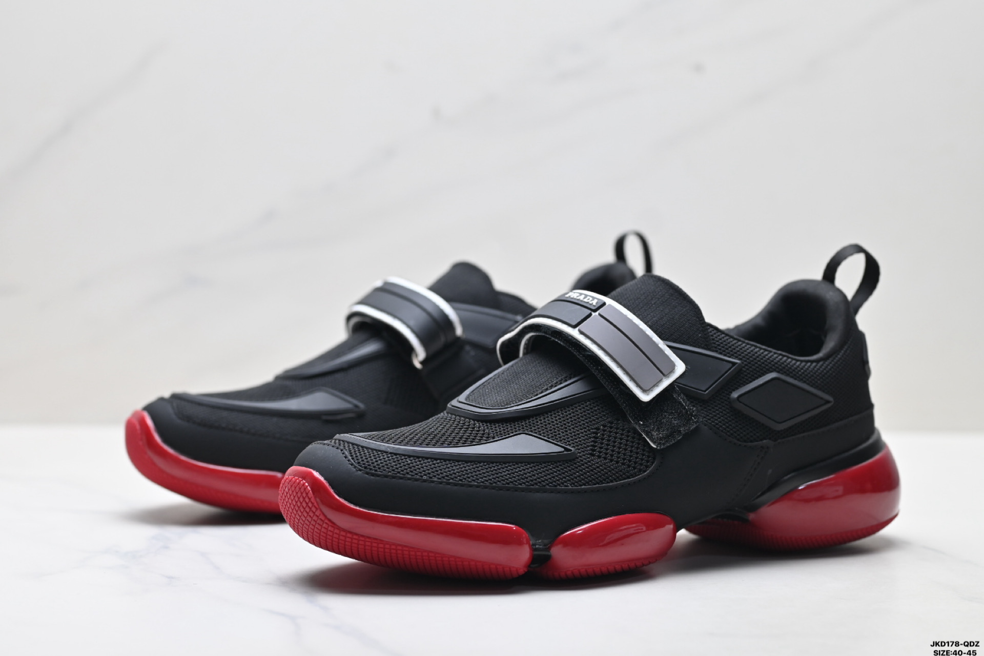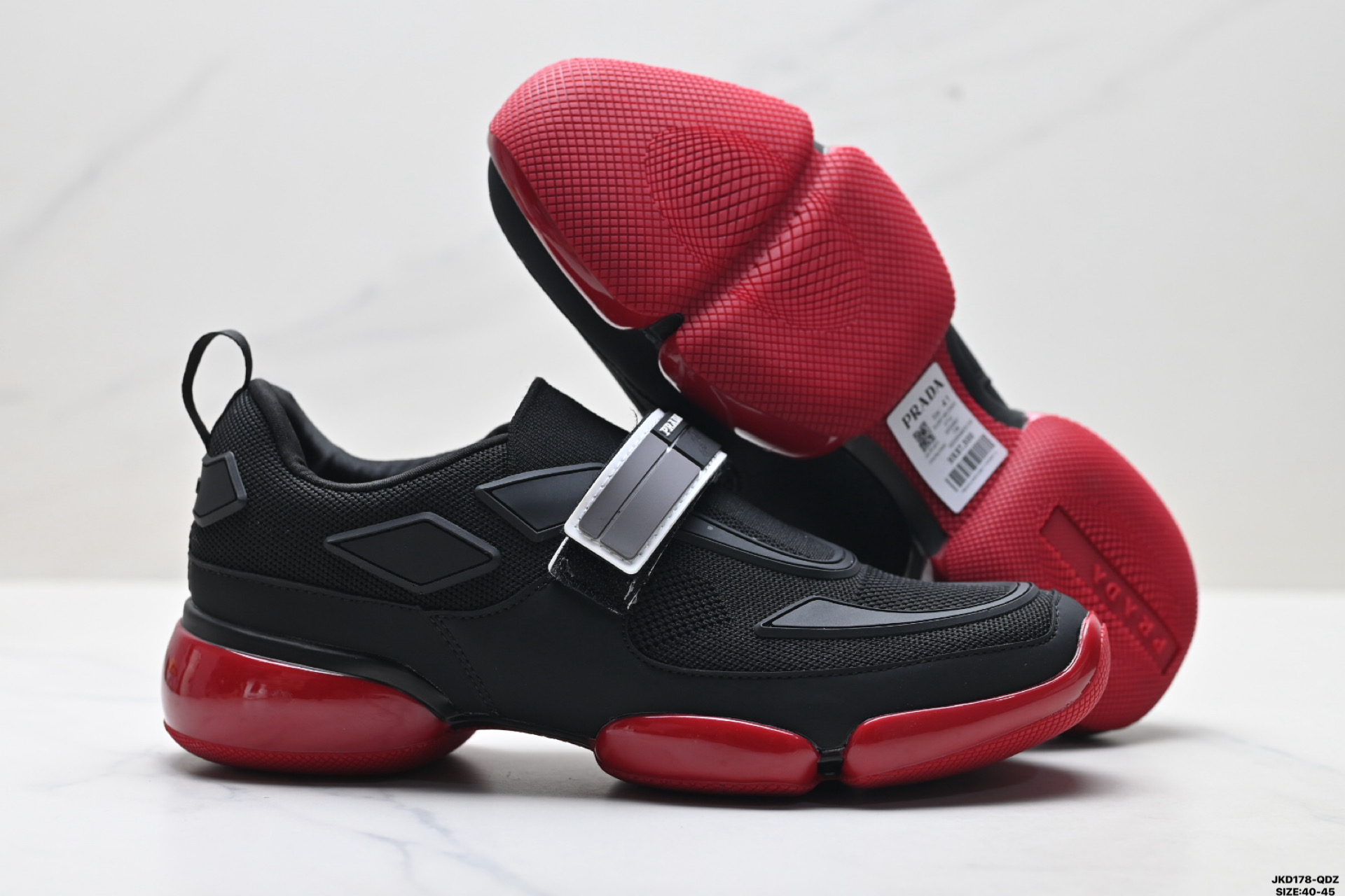 💰150 真标✅PRADA普拉达 Cloudbust 魔术贴 运动 减震耐磨包裹性 低帮生活休闲鞋 此款全新的运动鞋采用运动和创新设计 具有网眼锥形轮廓和气垫设计 橡胶鞋底为这款个性鲜明的运动鞋注入现代魅力 网眼织物 橡胶材质 魔术贴搭扣开合带 橡胶鞋底 货号:2OG066_2ODJ_F0002 尺码:40-45 ID:JKD178-QDZ
