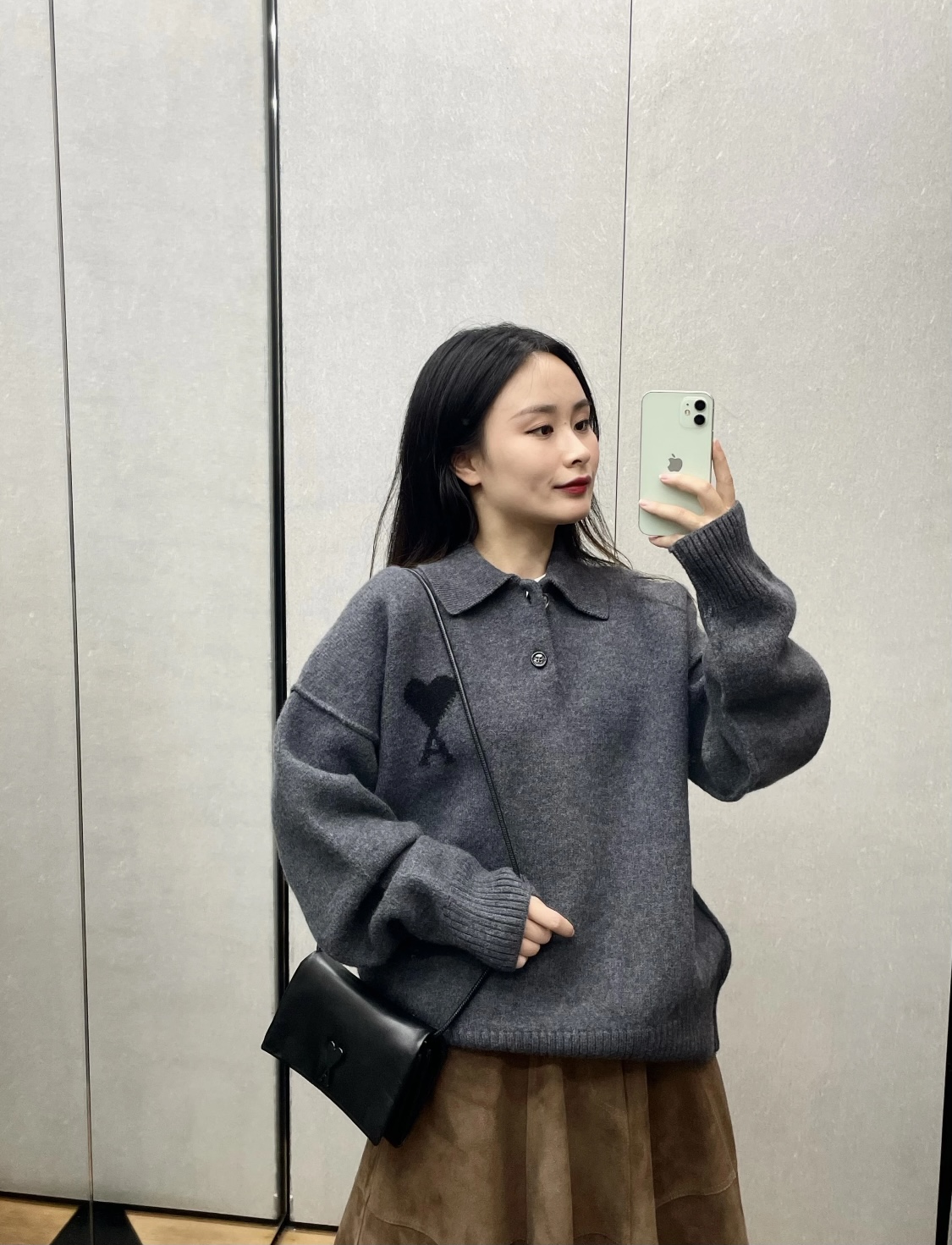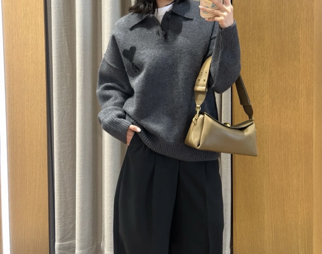 Ami Paris 爱心提花针织翻领Polo毛衣上身效果#