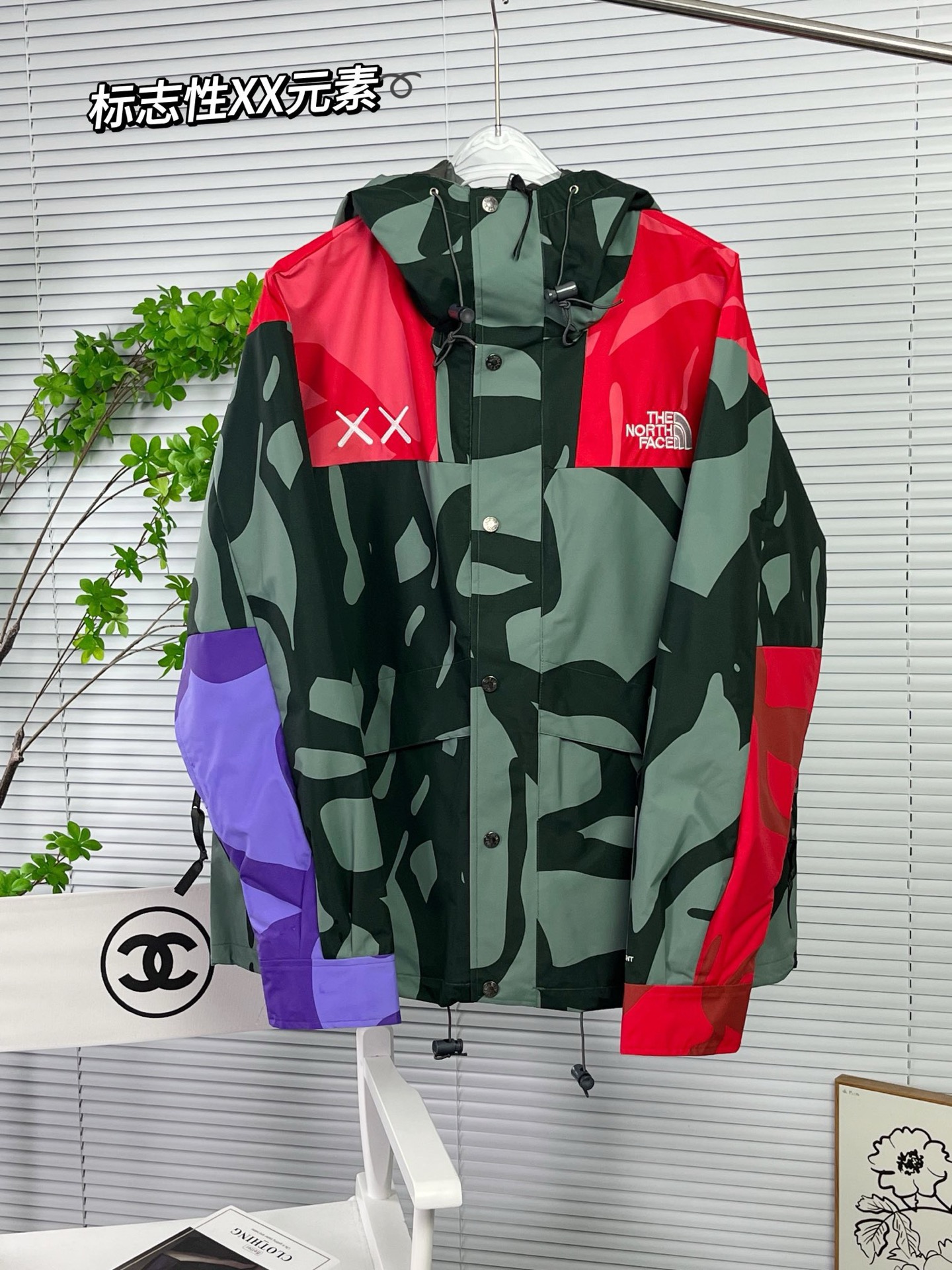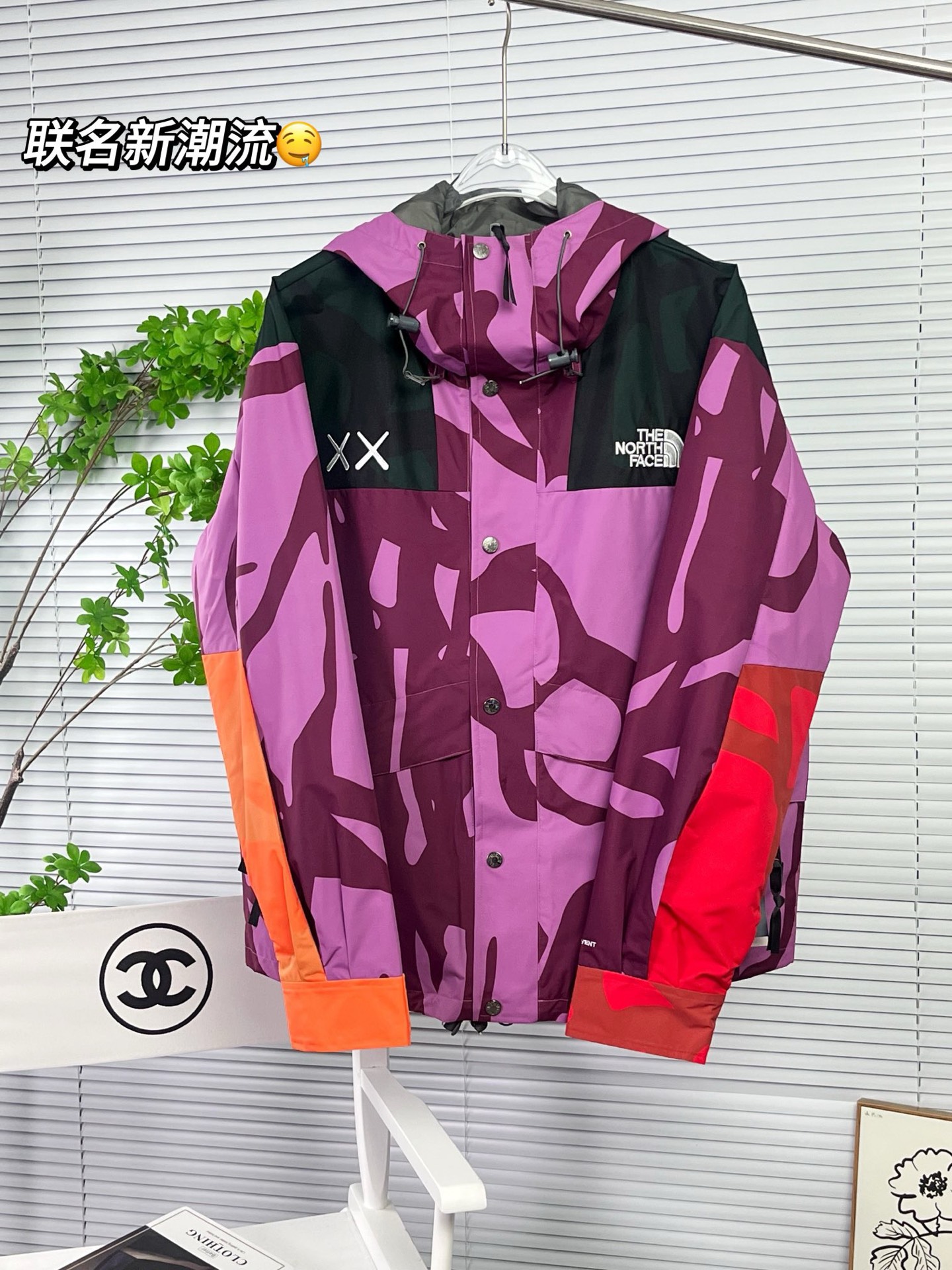特价💰89 不退换 北面THE NORTH FACE x KAWS 字母Logo绣花连帽长袖冲锋衣 码数s-xl 全码