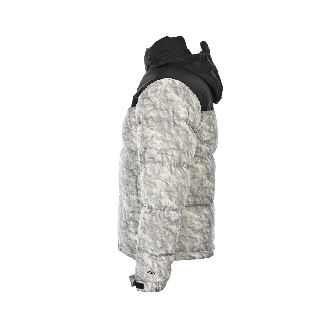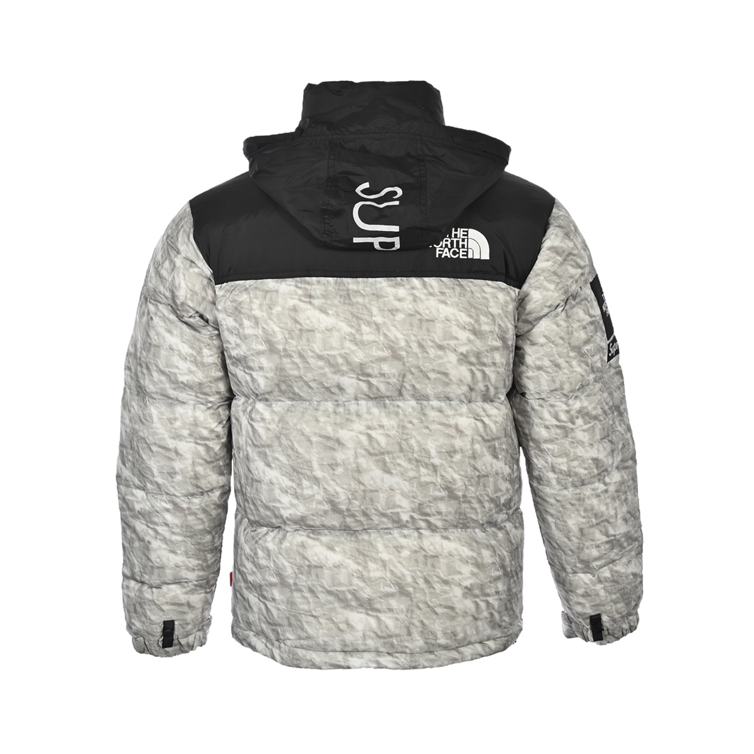 The North Face & Supreme 19Fw皱纸羽绒服 面料订织1.5*1.5mm 格纹面料 成分为100%锦纶,环保染色 色牢度国标3级以上防水,抗静电,防菌防疫 2道轧光后确保防绒效果,面料织数还原一致,自然密度够,故耐撕拉耐刮钩,杜邦强防水技术,防水效果佳,设计师从“褶皱的纸”中吸取灵感,创造了一件看上去像是穿了很久的褶皱衣服,迎合当下的做旧复古风暴,极具创意,上身效果炸街,街头吸精利器,18年高价购入开发,可惜当年发售夭折,19FW终于发售,印花是高清整体直喷,印花800dpi滚筒扫描电脑后期红外线定位拼图600d,这样的印花有明暗的过渡优化效果,这样看起来会非常有立体感,全部印花都是定位裁片,全部都经过了上浆和表面防水处理,有薄膜内衬,Logo采用进口百灵达2800针刺绣,进口单股纯白珠光线,针车间距与纱线粗度均与原版一致对应,代购厂拷出来的原版矢量图,成品线密度间距0.4,行业均值为1 针数1.3w针,工时28min,面料料印花部分是苯白丝光#10,黑色部分是尼龙深黑#15,数码对位,阴影-针线衔接-后幅左右袖子全方位对位边角细节,边角阴影的后摆延伸均到位,辅料+领标+袖标+刺绣全部对照原版订制,统一使用新国际标准90白鸭绒(可检测)以蓬松度700的标准,每件羽绒不低于440克,百分之百填充,纯羽绒为了区分小作坊的手工填充羽绒,我们统一选择使用MCGS机器填充,针对每个裁片的充绒数量,羽绒搅动的蓬松度控制以及成品版型/重量,均需要精准计算,羽绒内胆900密度双层胆布附带防跑绒涂层,保持羽绒版型同时,保证干洗后羽绒不走位,内里内衬900密度附带防跑绒涂层,在此再为跑绒问题增加一强力护盾,辅料三标全部订做 Size:S-XL