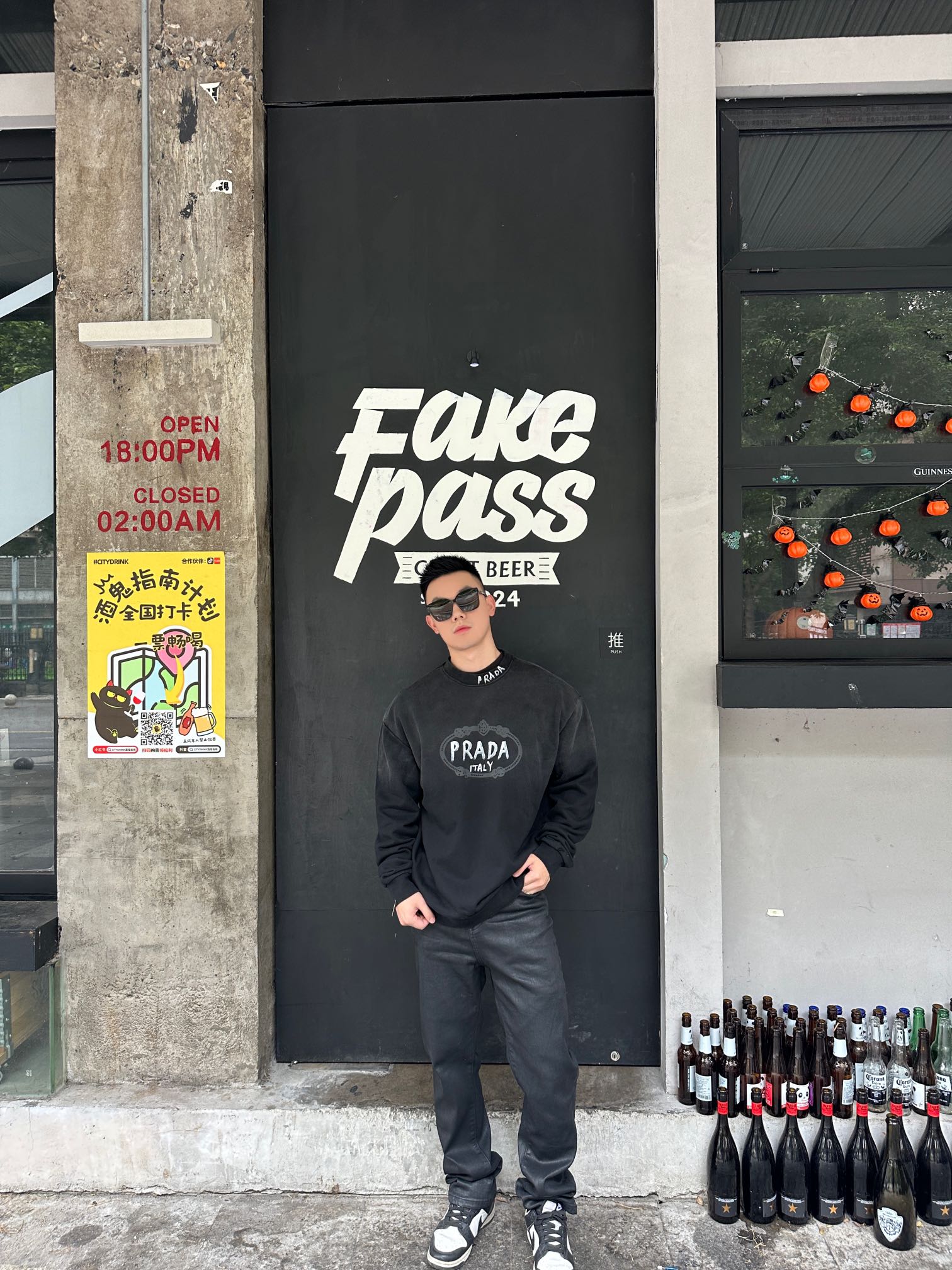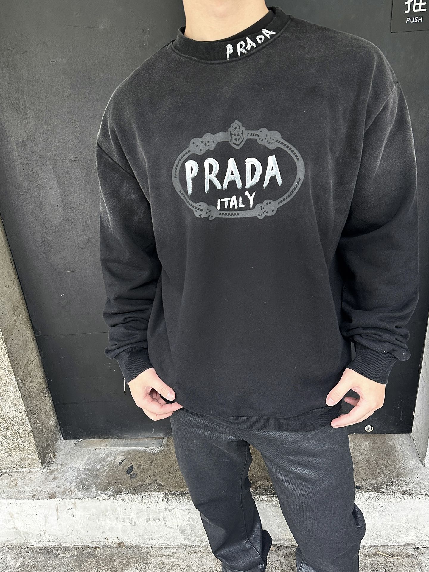 Prada/普拉达 水洗手绘字母字母圆领卫衣 上身效果#