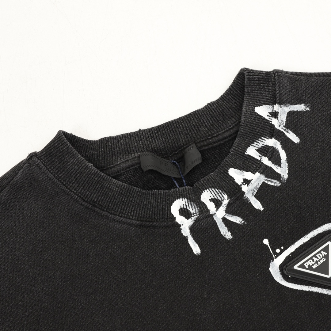 💰160 Prada/普拉达 水洗手绘字母字母圆领卫衣 size:XS-L