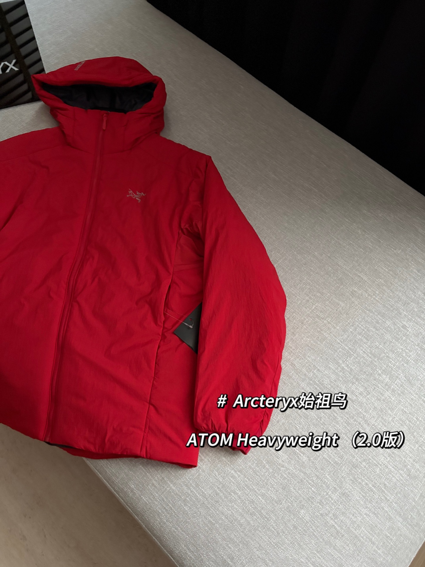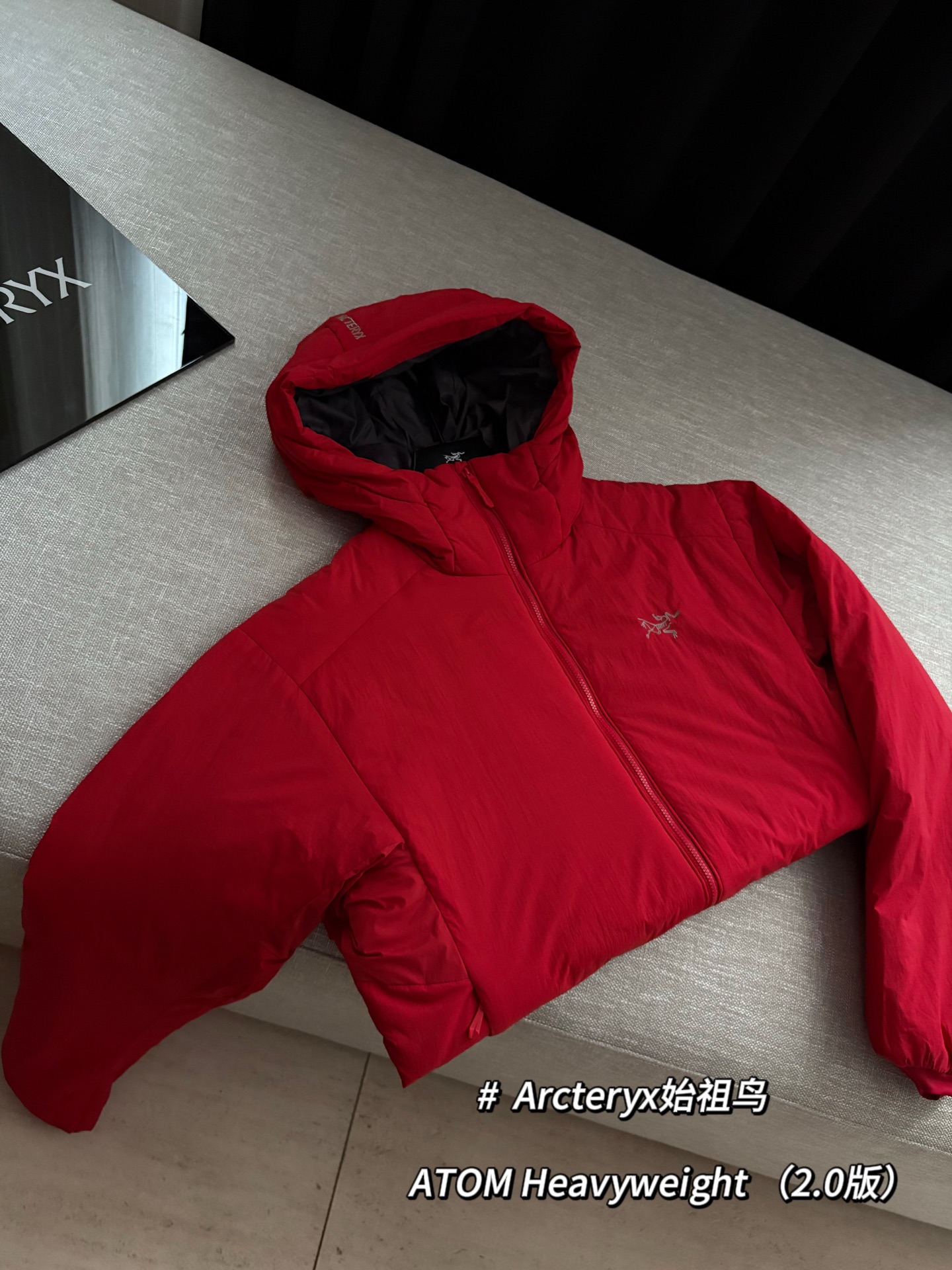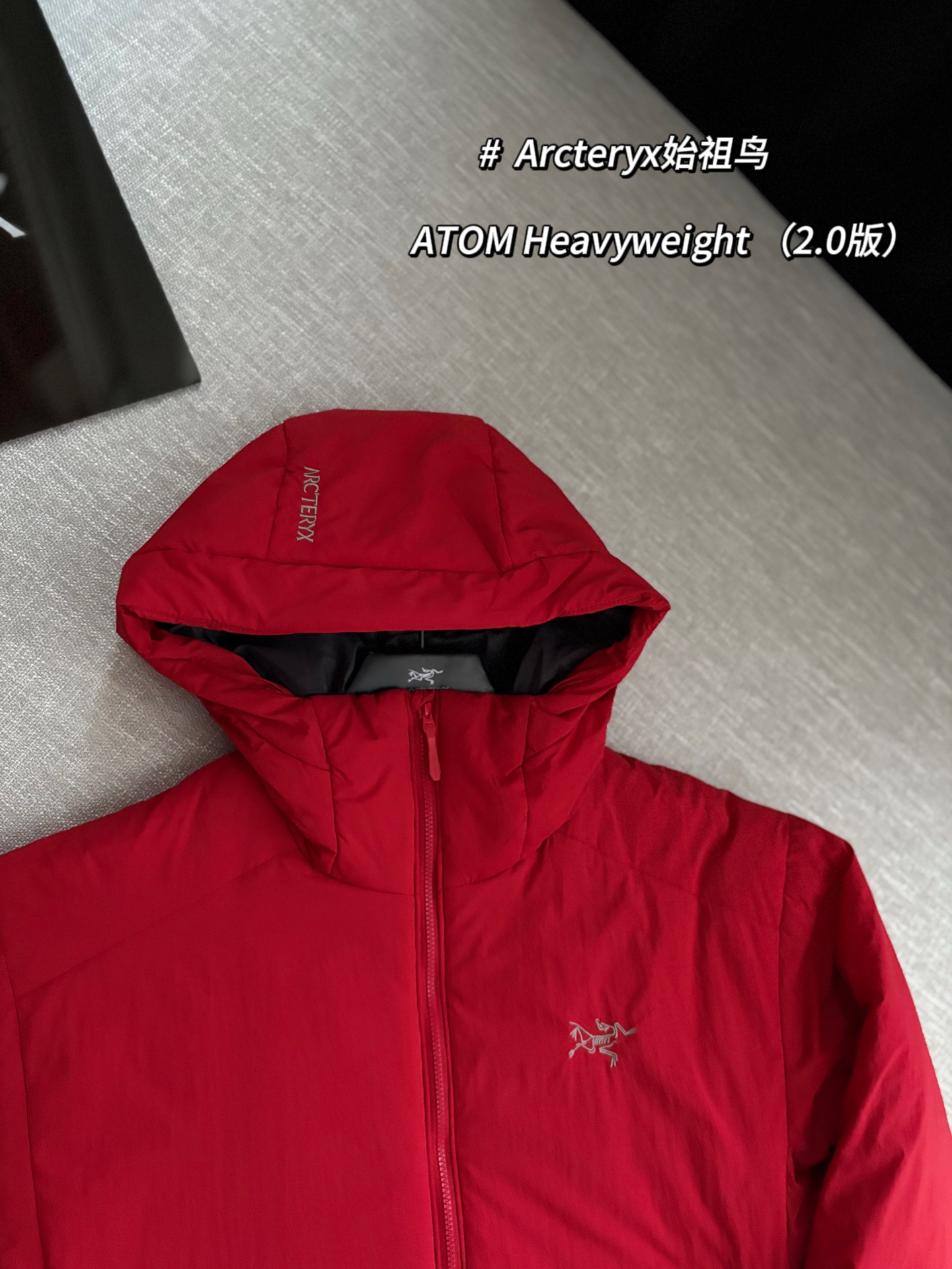 Arcteryx始祖鸟 ATOM Heavyweight 纯色Logo徽标防风防泼水保暖加厚适用-5°至10°连帽棉服 @复古红