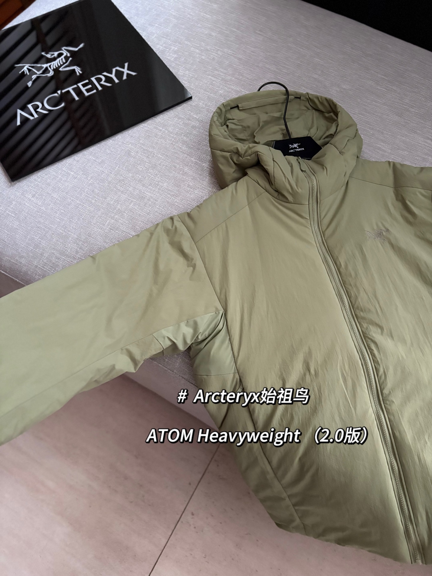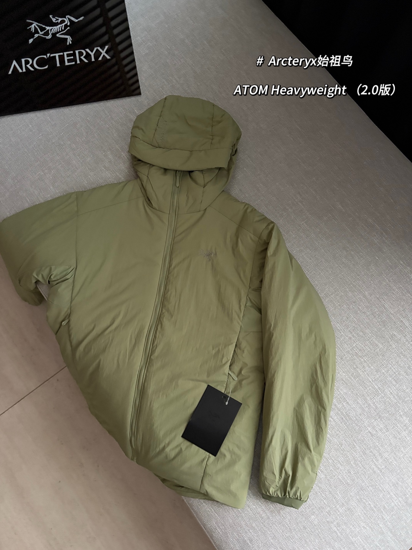 Arcteryx始祖鸟 ATOM Heavyweight 纯色Logo徽标防风防泼水保暖加厚适用-5°至10°连帽棉服 @球藻绿