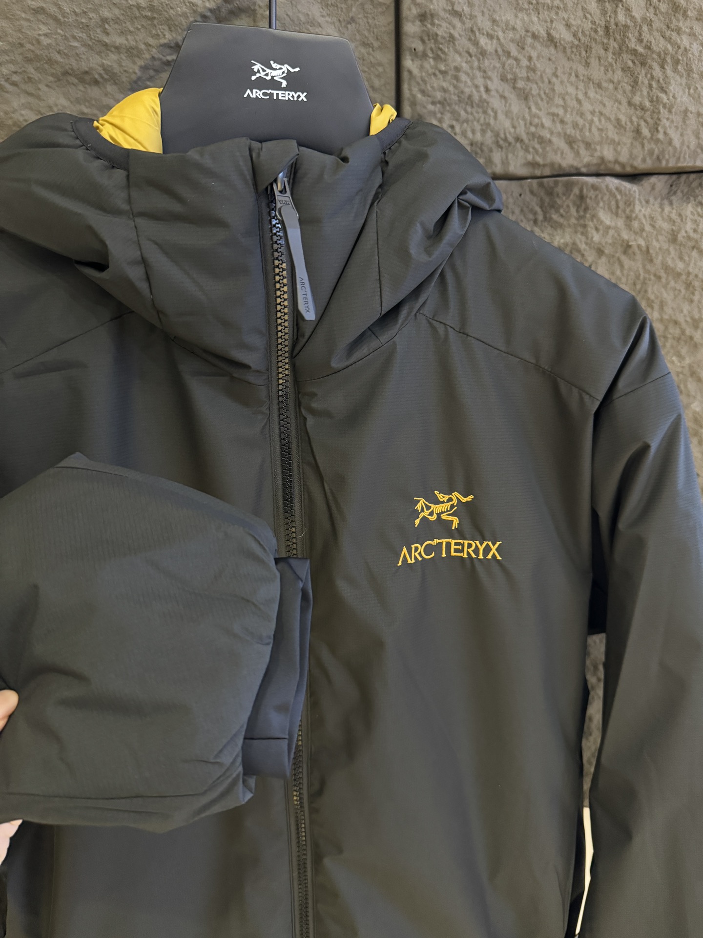 Arcteryx始祖鳥 Atom Hoody M Logo字母圏案戸外防水保暖连帽棉服外套 @黑金
