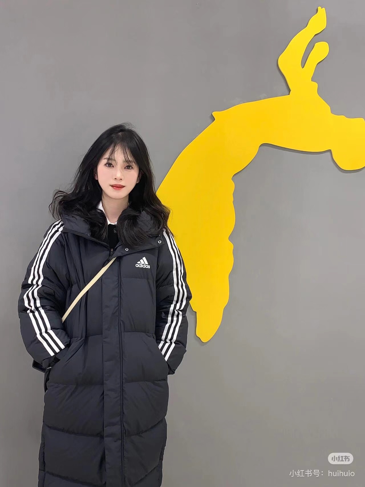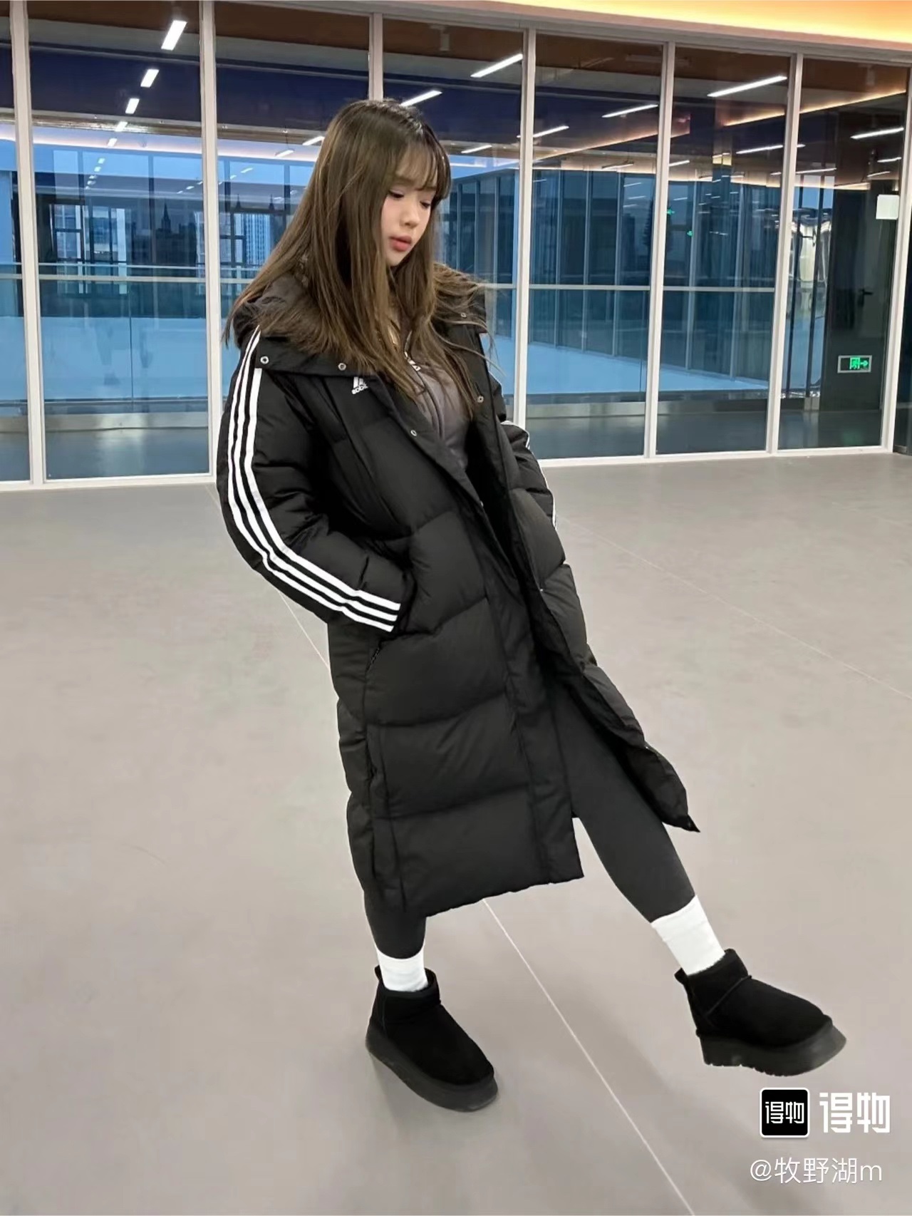 #Adidas / 阿迪达斯3ST Long Coat 纯色印花连帽长款羽绒服上身效果