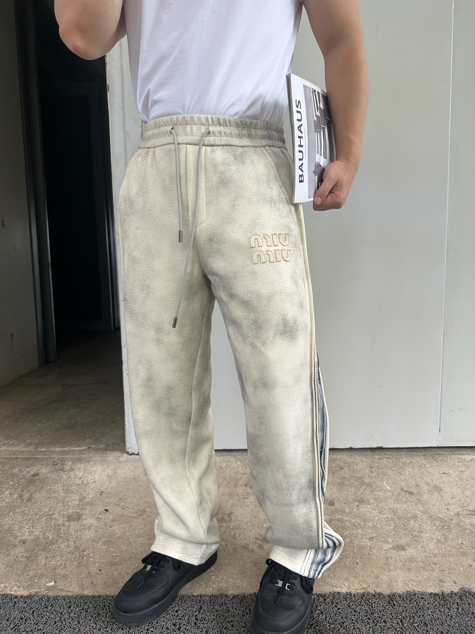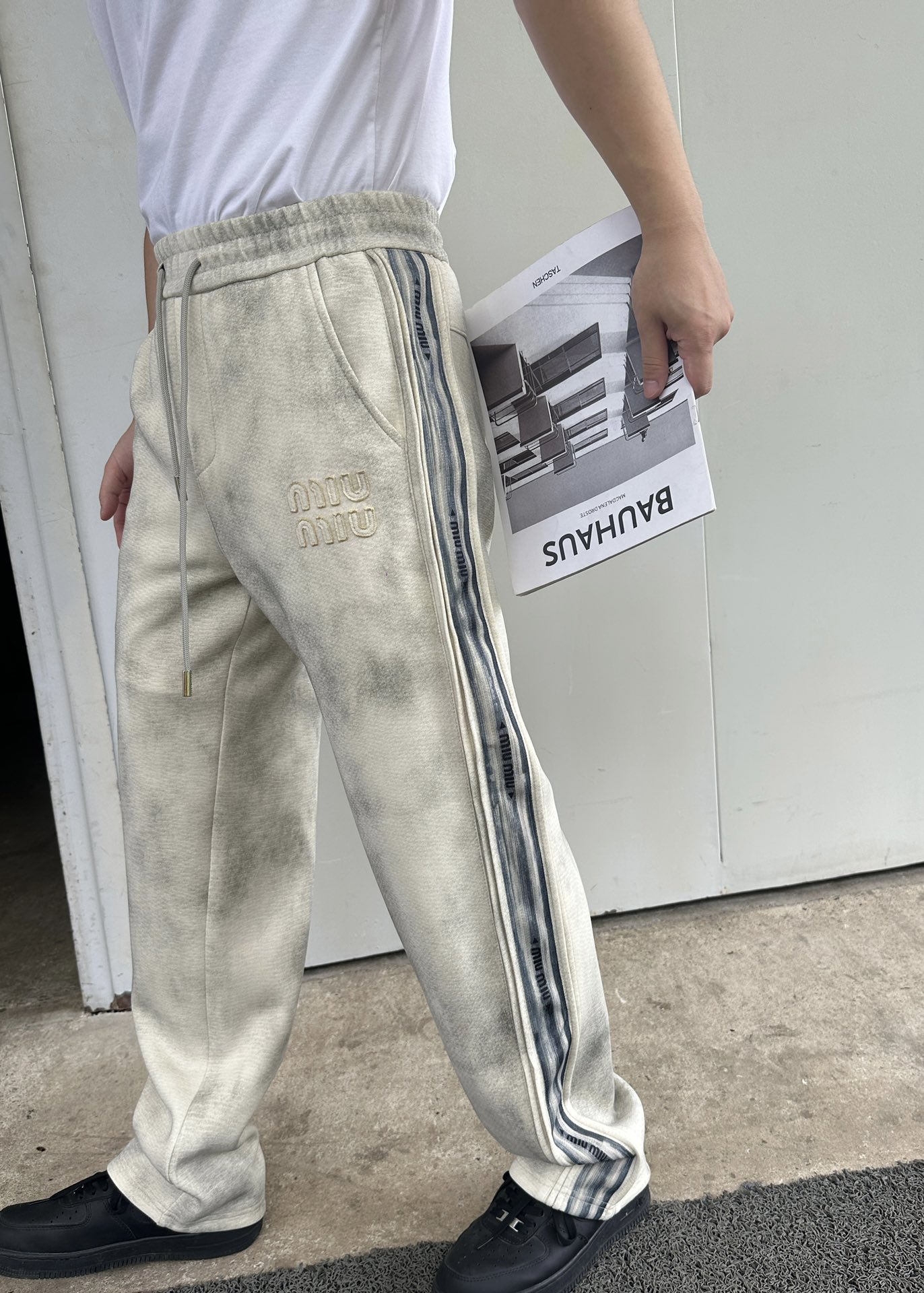 MIUMIU/缪缪 贴布刺绣字母水洗长裤 上身效果#