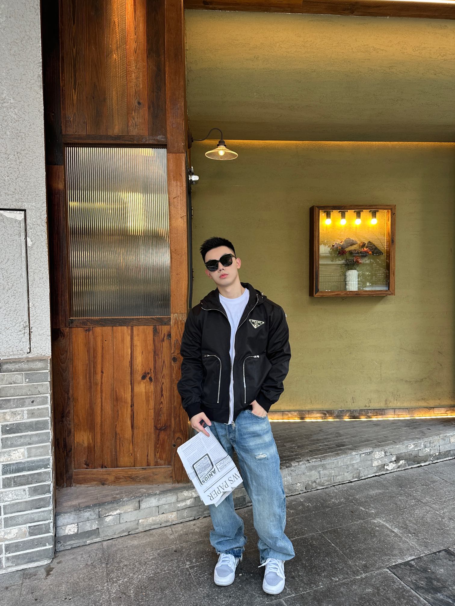 Prada普拉达 三角标拉链连帽外套 上身效果#