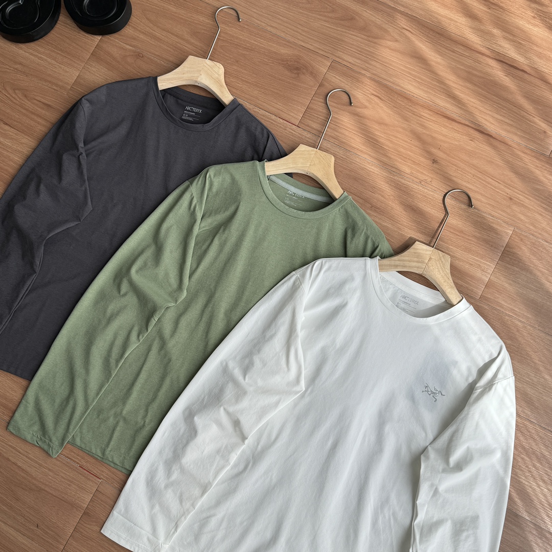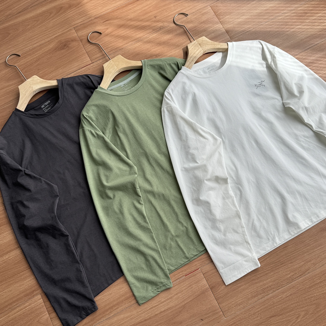 发90💰男款CORMAC CREW 圆领防晒速干长袖始祖鸟官网同步三色打底衫 重工绣花印花款 是一款高品质户外打底衫,其主要特点如下: • 材质:由柔软、耐用的有机棉与高性能涤纶材料结合而成,兼具天然纤维的舒适感和合成纤维的功能性 。 • 设计:圆领设计,衣袖饰有图案,外观简约时尚。腋下插角布和微弹力设计,确保活动自如,能满足户外运动时的各种大幅度动作需求 。 • 透气性:具备良好的透气性能,能有效排出汗水和湿气,让皮肤保持干爽,穿着舒适。 颜色:黑色/石膏白/幽雾绿 尺码 S M T XL XXL 衣长 66 69 71 74 76 胸围 108 112 116 120 124 肩宽 48 49.5 51 52.5 54 袖长 58.5 60 61.5 62.5 63.5 身高 160 170 175 180 185