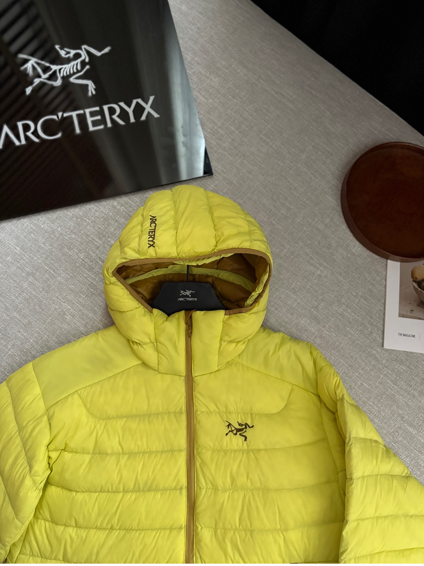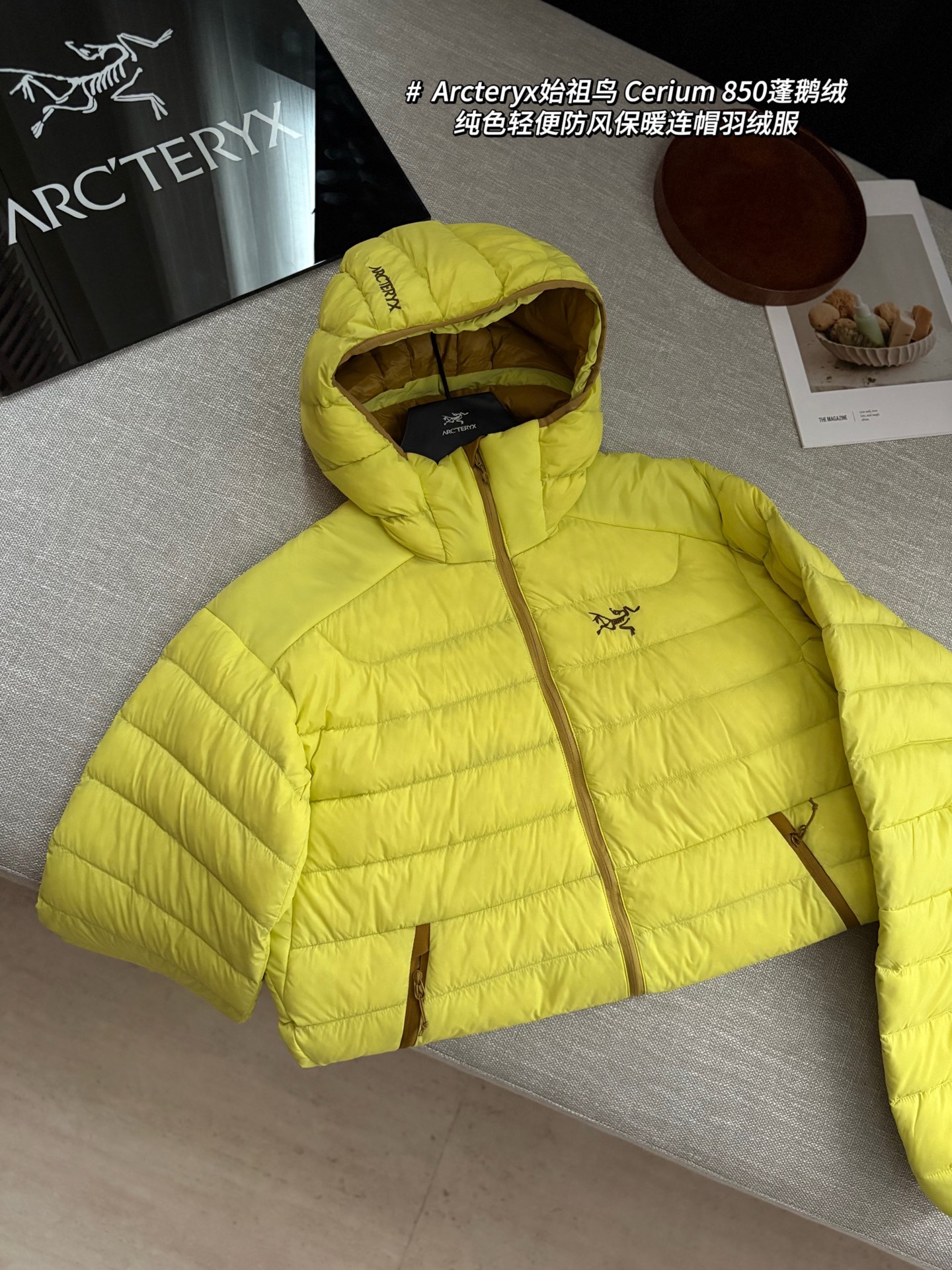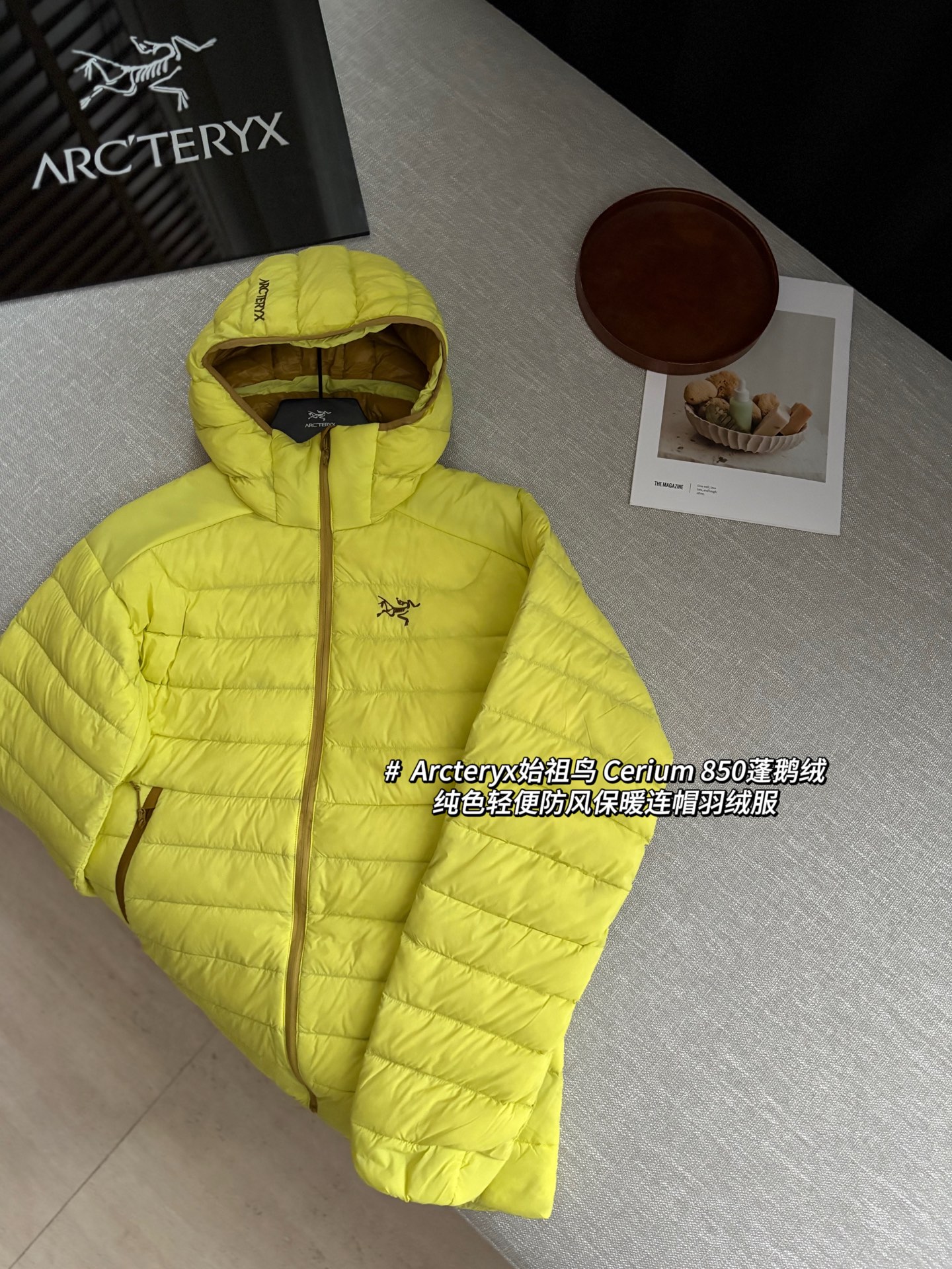 Arcteryx始祖鸟 Cerium 850蓬鹅绒纯色轻便防风保暖连帽羽绒服 @铜砂黄