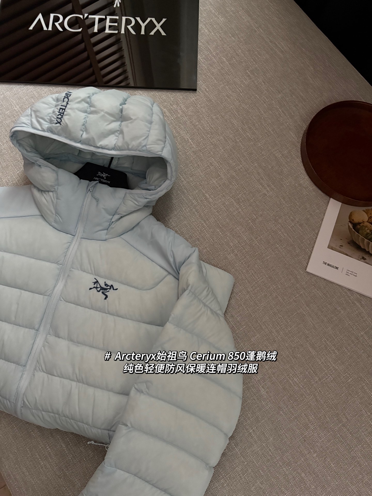Arcteryx始祖鸟 Cerium 850蓬鹅绒纯色轻便防风保暖连帽羽绒服 #以太蓝