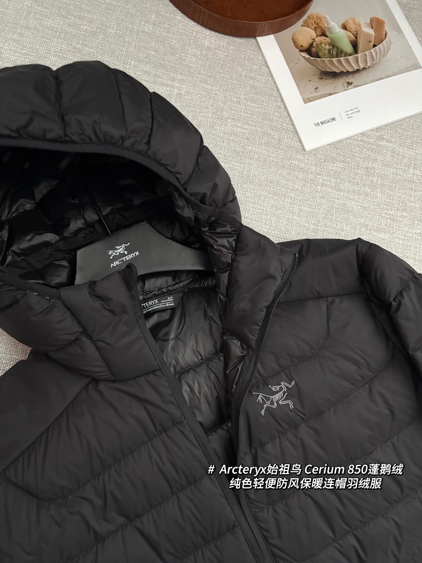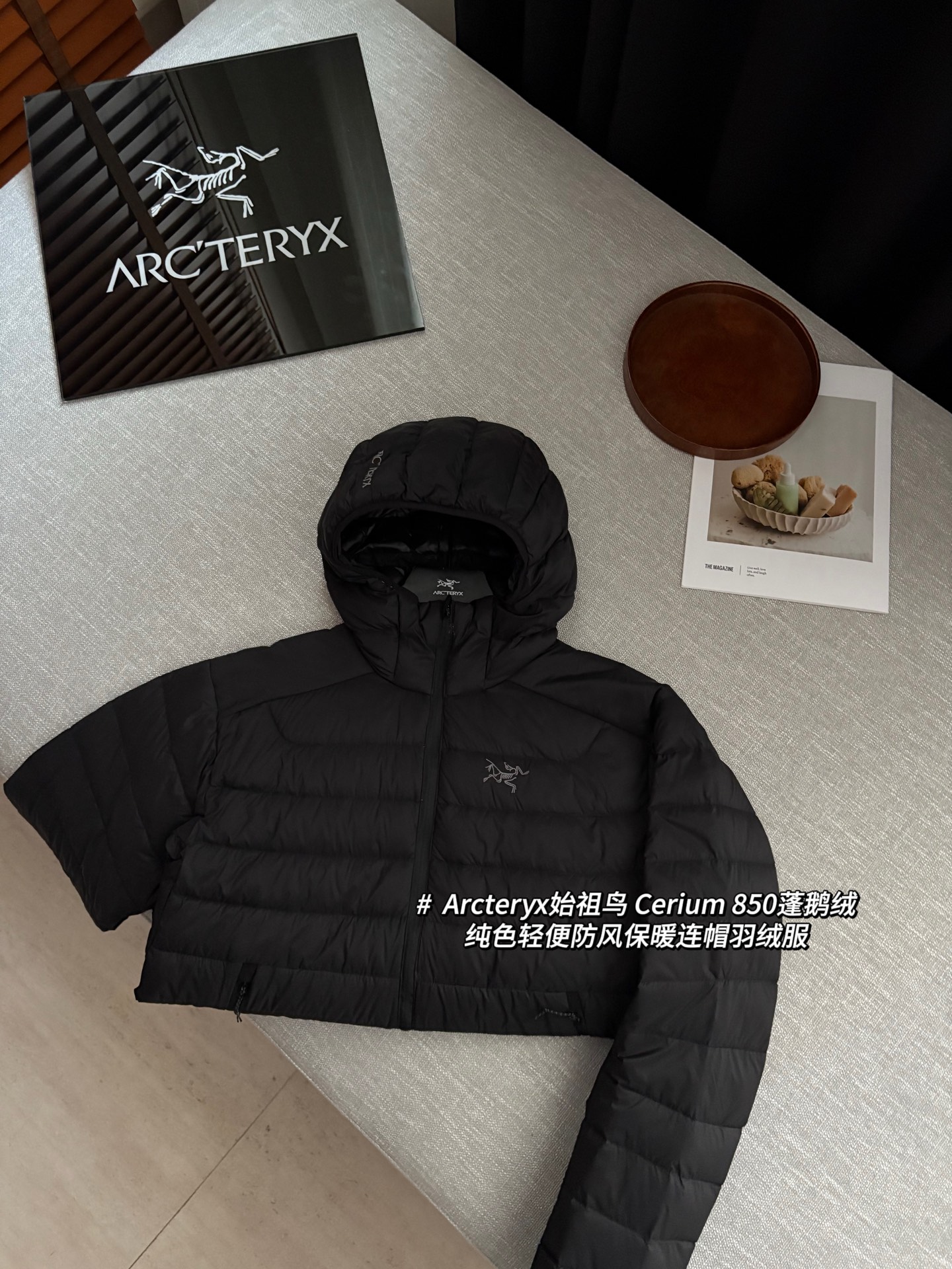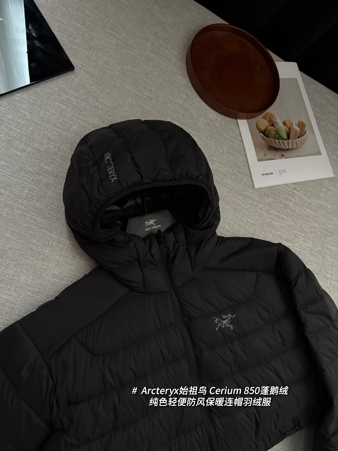 Arcteryx始祖鸟 Cerium 850蓬鹅绒纯色轻便防风保暖连帽羽绒服 @黑色