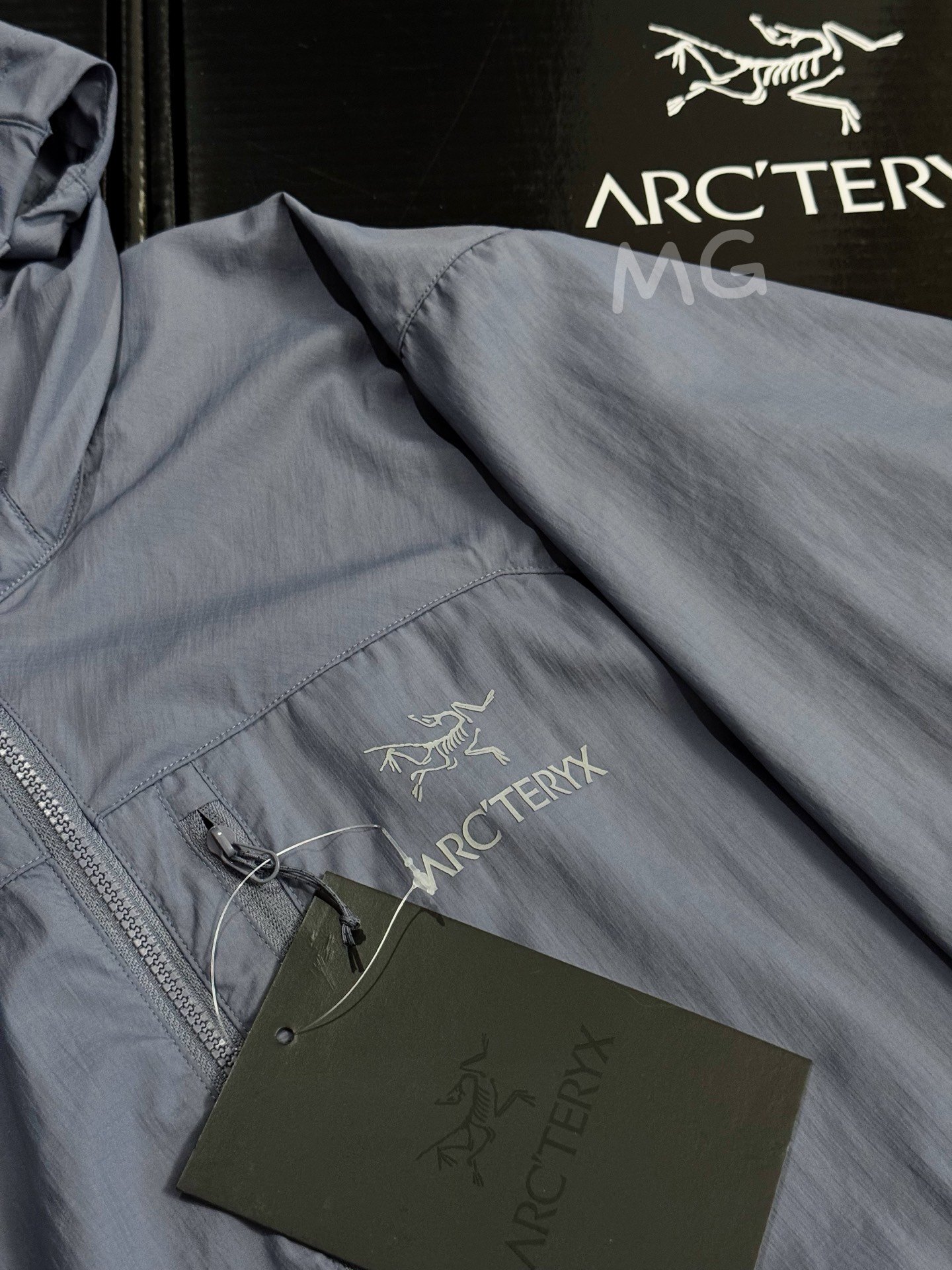 💰调价160 款号G31 顶级版本 Arcteryx始祖鸟 Squamish Hoody 轻薄风壳连帽休闲薄款夹克 这款夹克最大的特点就是轻便,M码重量仅155g,穿在身上几乎没有负担,适配徒步、登山和骑行多场景。而且它还可以被压缩并塞进自己的胸前口袋,不占空间。采用Tyono™ 30 尼龙面料,具有高透气性和抗风性,能有效阻挡强风,即使在风大的山上或者海边,也可以保持舒适。同时透气性也非常好。修身的设计,在活动中可以进行全方位的运动,不会受到束缚。 参数解析: 1. 轻薄便携,性能卓越 * 面料:🌟 Squamish Hoody 采用 Tyono™ 30 尼龙面料,兼具防风、耐磨和高透气性,重量仅约 200 克,可轻松收纳至自身胸袋,随身携带无负担。 * StormHood™ 可调节兜帽:☔ 单手拉绳设计,贴合头部且不影响视野,适合恶劣天气使用。 * 防泼水处理:💧 表面 DWR 涂层可抵御小雨和泼溅,保持干爽。 * 修身剪裁:💃 贴合身形设计,搭配腋下插角布,活动灵活无束缚。 2. 多功能场景适配 * 定位:🌍 作为 “全天候风壳”,适合徒步、登山、骑行等户外运动,也适合城市通勤和日常防风防晒。 * 防晒性能:🌞 深色款防晒效果更佳,浅色款轻盈透气。 * 收纳便捷:🎒 单侧胸袋可存放压缩后的夹克,方便挂扣在背包或安全带上。 3. 配色与细节 * 配色:🎨 提供多款配色(如黑、灰、蓝等),满足不同风格需求。 * 细节:🔒 下摆双侧调节扣可防止灌风,拉链采用 No Slip Zip™ 技术,顺滑耐用。 颜色: 黑色 层云灰 浩渺灰 天青色 幽雾绿 原子灰 云天蓝 幸运蓝 埃及橙 码数:S-XXL 胸围:115 118 122 126 130 衣长:73 74 76 78 80 袖长:68 69 70 71 62