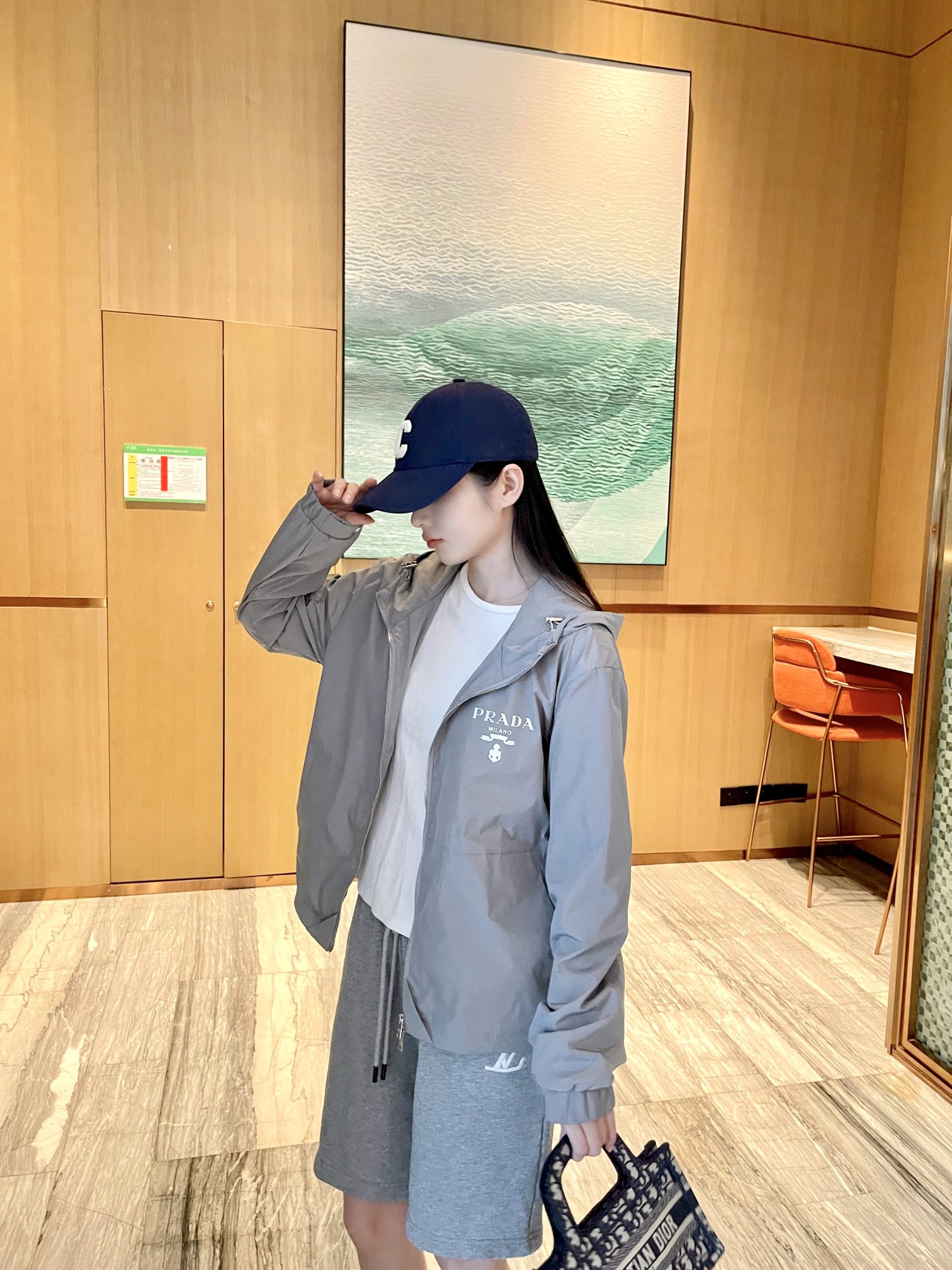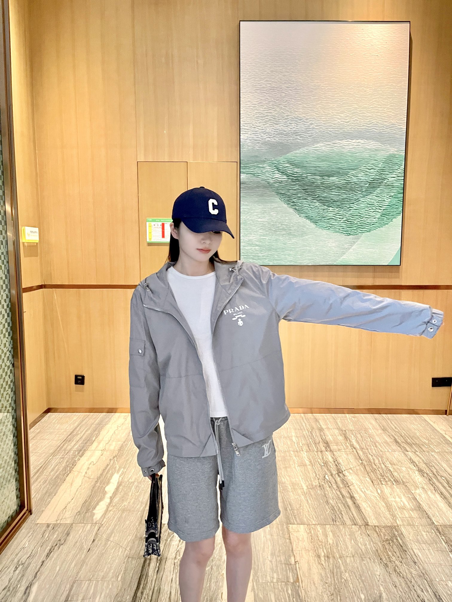 PRADA/普拉达 徽标印花梭织风衣外套 上身效果#