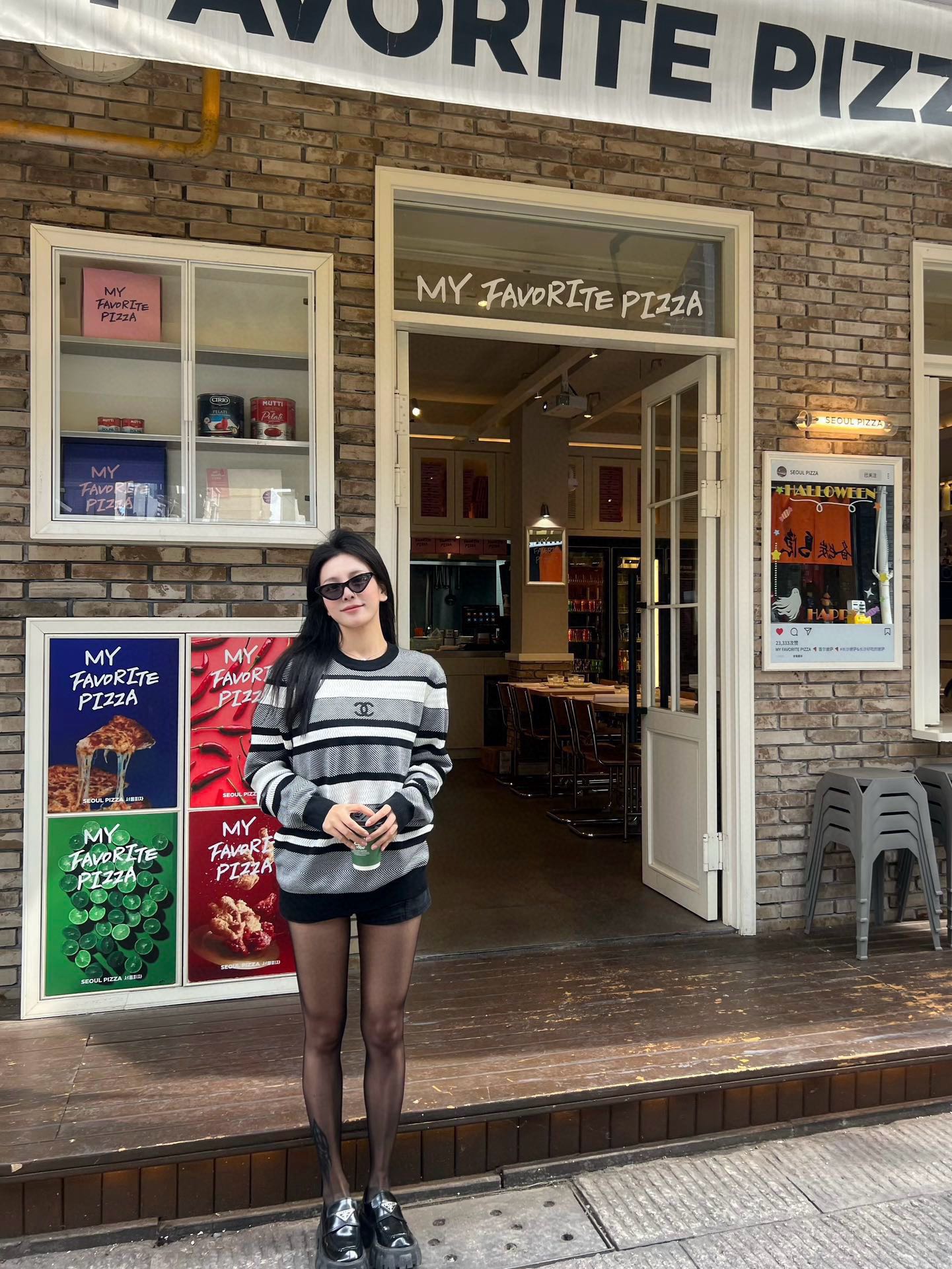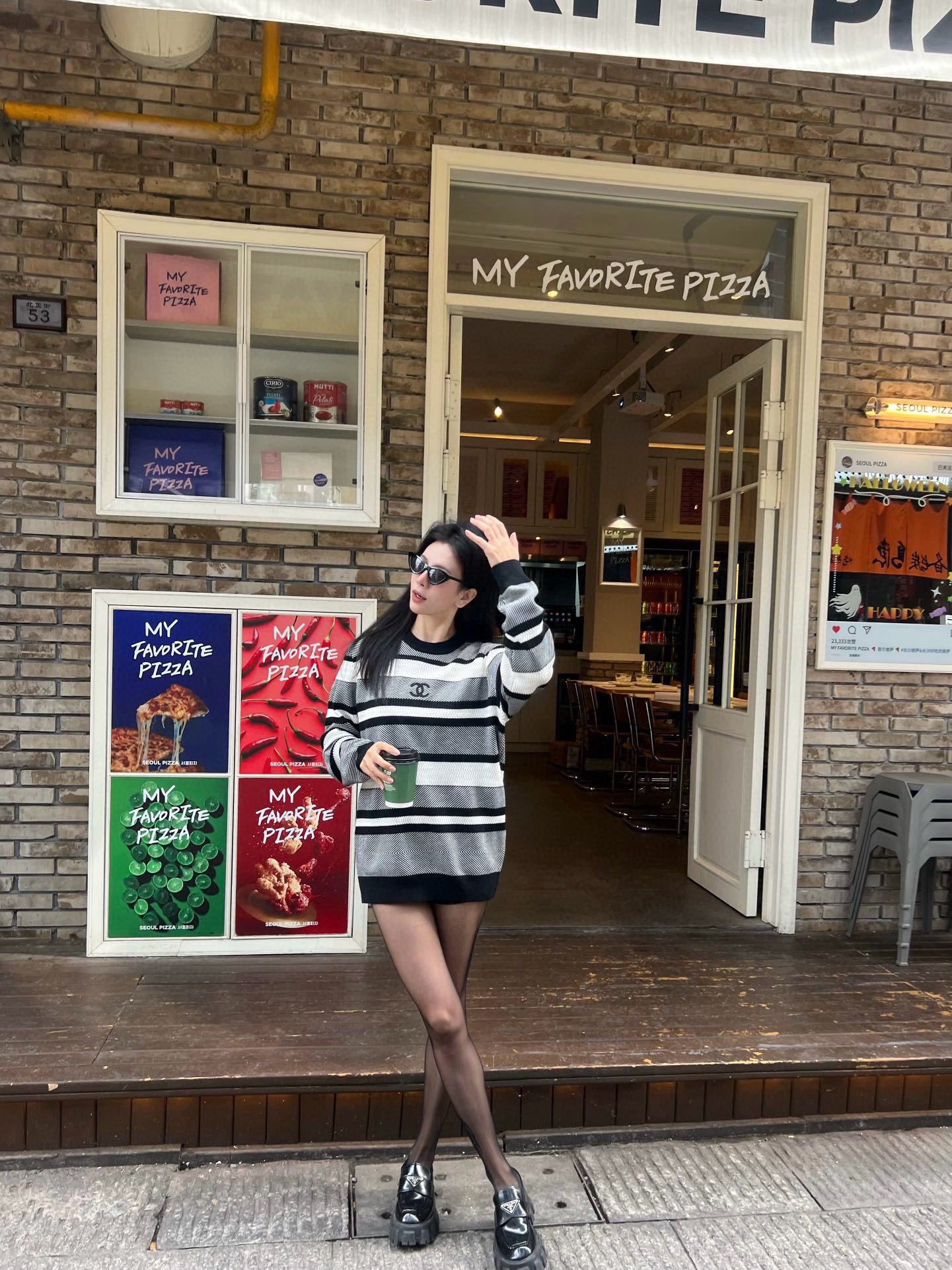 CHANEL /香奈儿 小香秋冬双CC标识刺绣条纹针织套头毛衣 上身效果#
