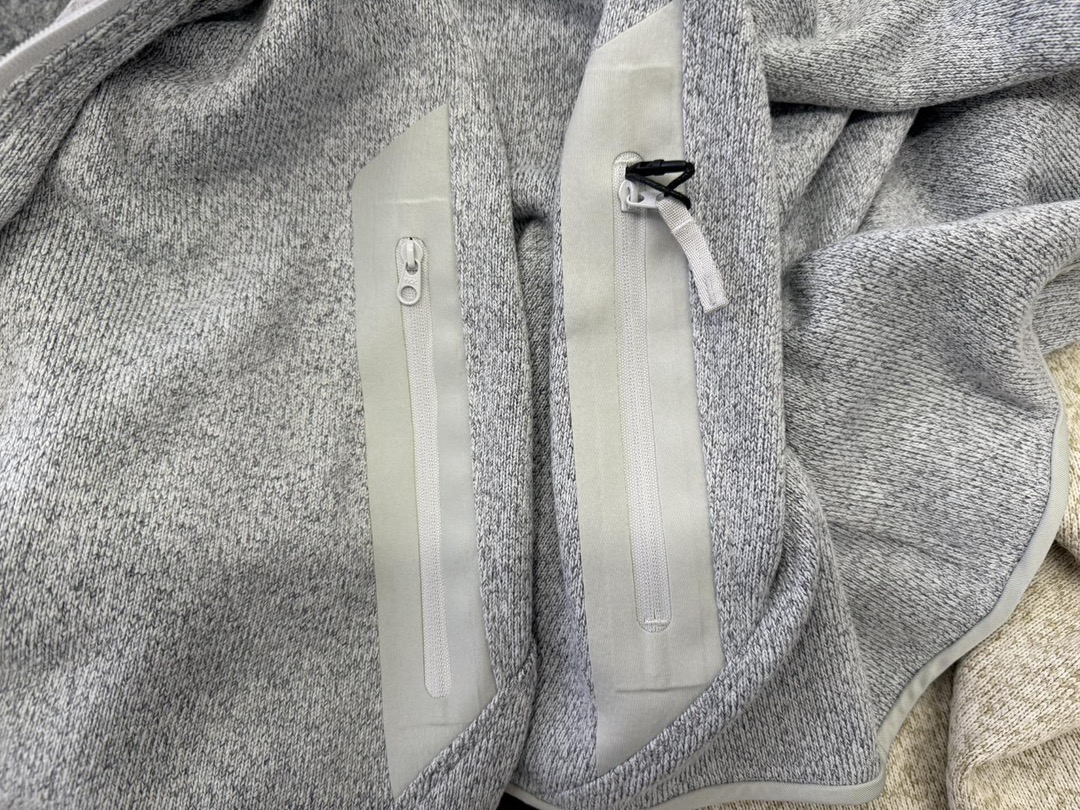 #面辅料对比,素材自取 始祖鸟Covert Cardigan 立领抓绒开衫外套 重磅推荐,来自鸟家经典的抓绒衫,柜上2000+都是靠抢的。 1️⃣Polartec® Thermal Pro科技绒,仿生热循环结构锁温提升40%,抗静电抗起球,-10℃贴肤仍羊绒般柔暖。面料轻盈暖糯,保证活动自如又亲肤舒适。内里抓绒,手感柔软舒适的同时又起到了更好的保暖作用。 2️⃣3D立体拼缝,肩背活动量+微收腰线,显瘦不紧绷,西装冲锋衣内搭无痕。 3️⃣隐形式关节补强,高弹氨纶混纺肘腋,登山办公大幅伸展不鼓包。 4️⃣ 压胶口袋设计,增添了户外服装的元素,安全存放小件必需品的同时,并赋予这款单品经典美感。手臂压胶口袋设计,更是点睛之笔且实用。加高立领,温暖呵护颈脖,连帽带点俏皮,冬天可以更好的防风。可单穿,可叠穿,真的是做到了一衣两穿啊! 尺码:S-XXL 颜色:极地白 幽雾灰绿 银雾绿 夜影蓝 石墨灰 黑灰色