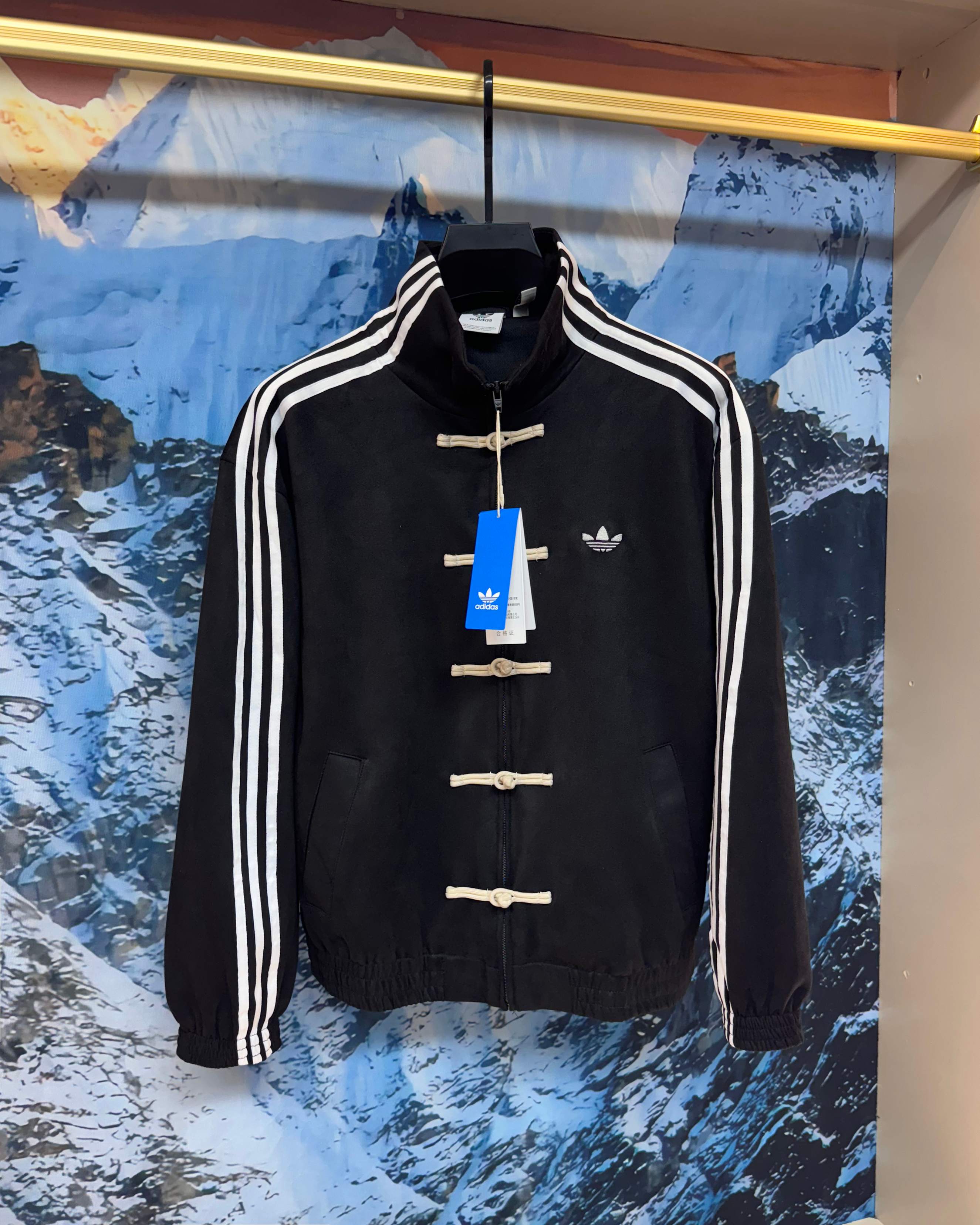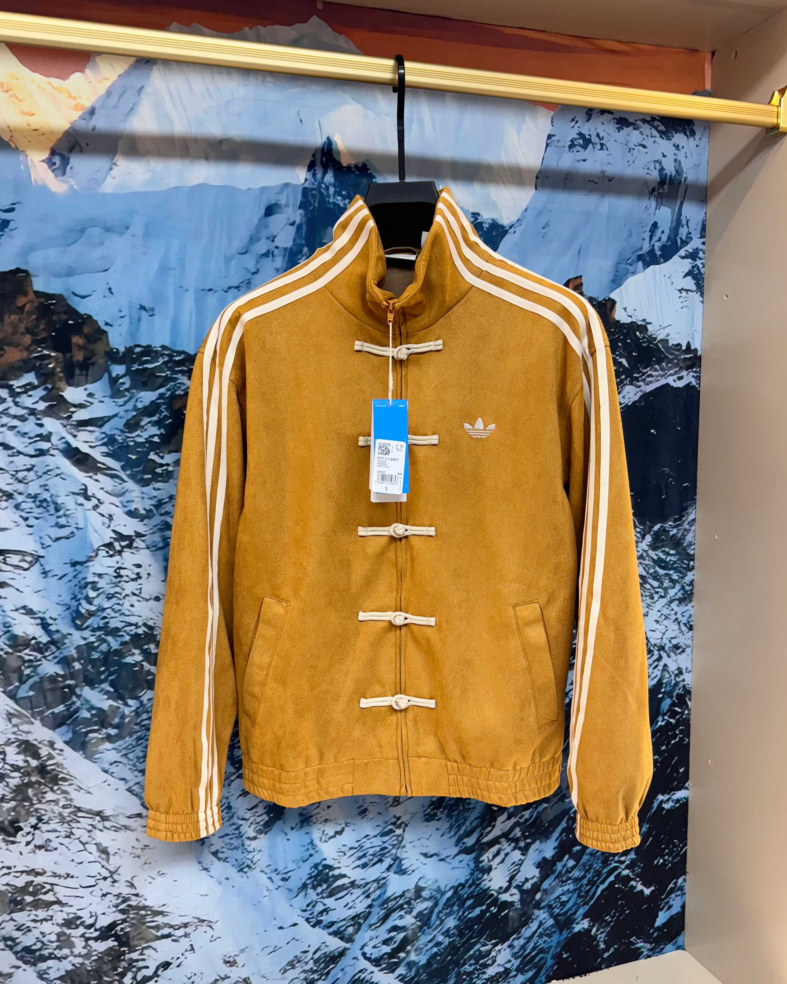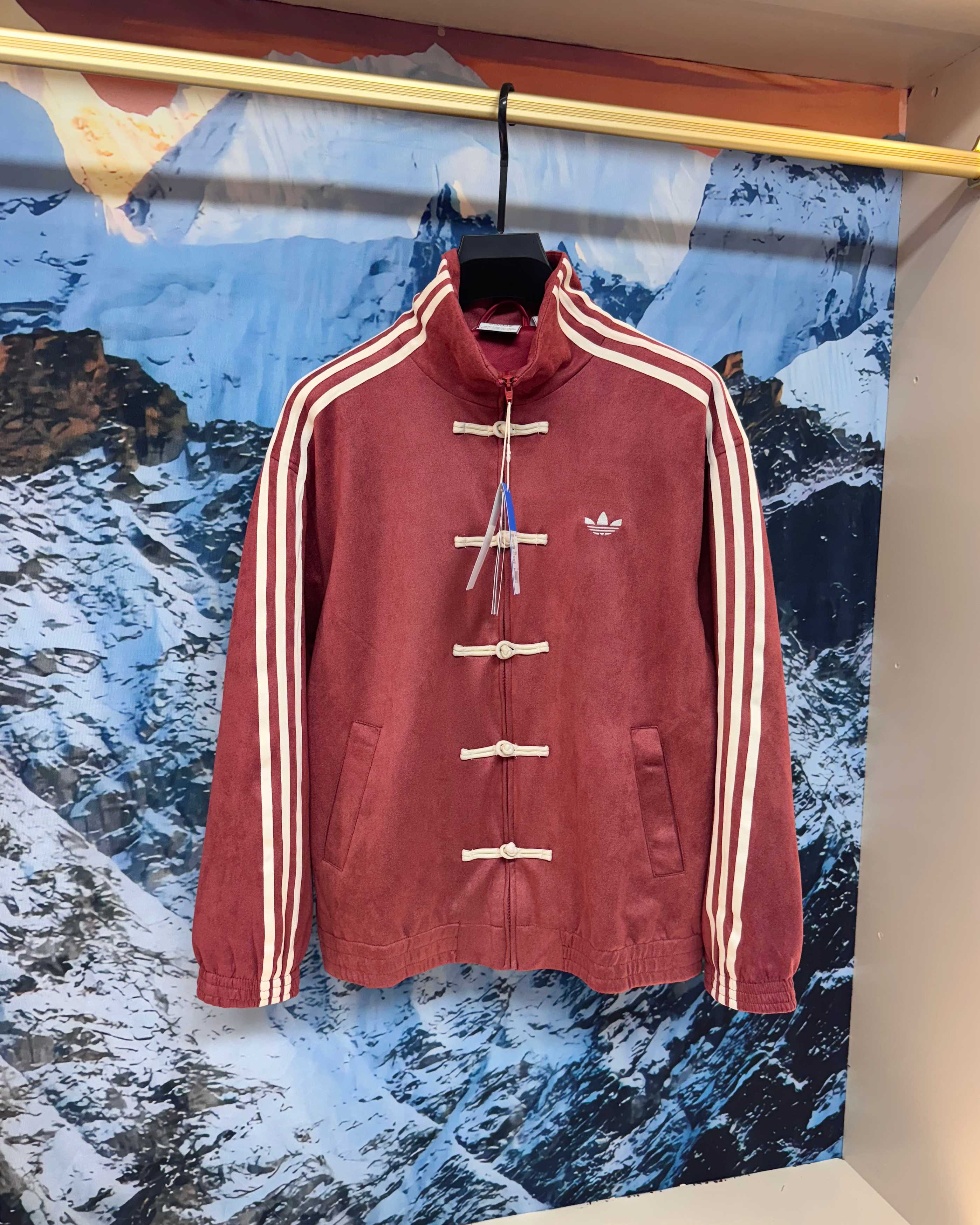 💰175 (爆款推荐+复刻版本) 《Adidas / 阿迪达斯 蛇年限定新款 原厂品质 三叶草 刺绣Logo麂皮绒面料 唐装盘扣外套 立领复古休闲夹克 男女同款》 这款包帅的 比去年丝绸款套装上身效果要帅的多 基本不挑人 强烈推荐!王安宇 等明星上身款 热搜潮流圈爆款! 蛇年限定唐装外套 以新中式设计理念 融合传统与潮流 为你开启新年新气象! 选用质感细腻的麂皮材质 高克重 垂感极高 触感柔软舒适 同时具有挺括感和高级感 麂皮独特的纹理与光泽质感上身舒适度也极高 服装设计融合新中式元素 将传统唐装立领 盘扣等细节与现代剪裁相结合 既保留了中式服装的古典韵味 又增添了现代时尚潮流感 定制拉链加盘扣 0色差 米白色衣服刺绣为银灰色 还原原版一致 门禁内里无针眼 通肩经典三条杠压条 松紧袖口和下摆 经典刺绣 Logo 开模定制拉链 网眼内衬 四色都是同色定织面料辅料 颜色:蓝色 红色 米白色 黄色. 黑色 码数:S M L XL 衣长 67 69 71 73 肩宽 57 58 59 60 胸围 126 130 134 138 袖长 59 60 61 62 袖肥 54 55 56 57 袖口 36 37 38 39 拉链 69 71 73 75