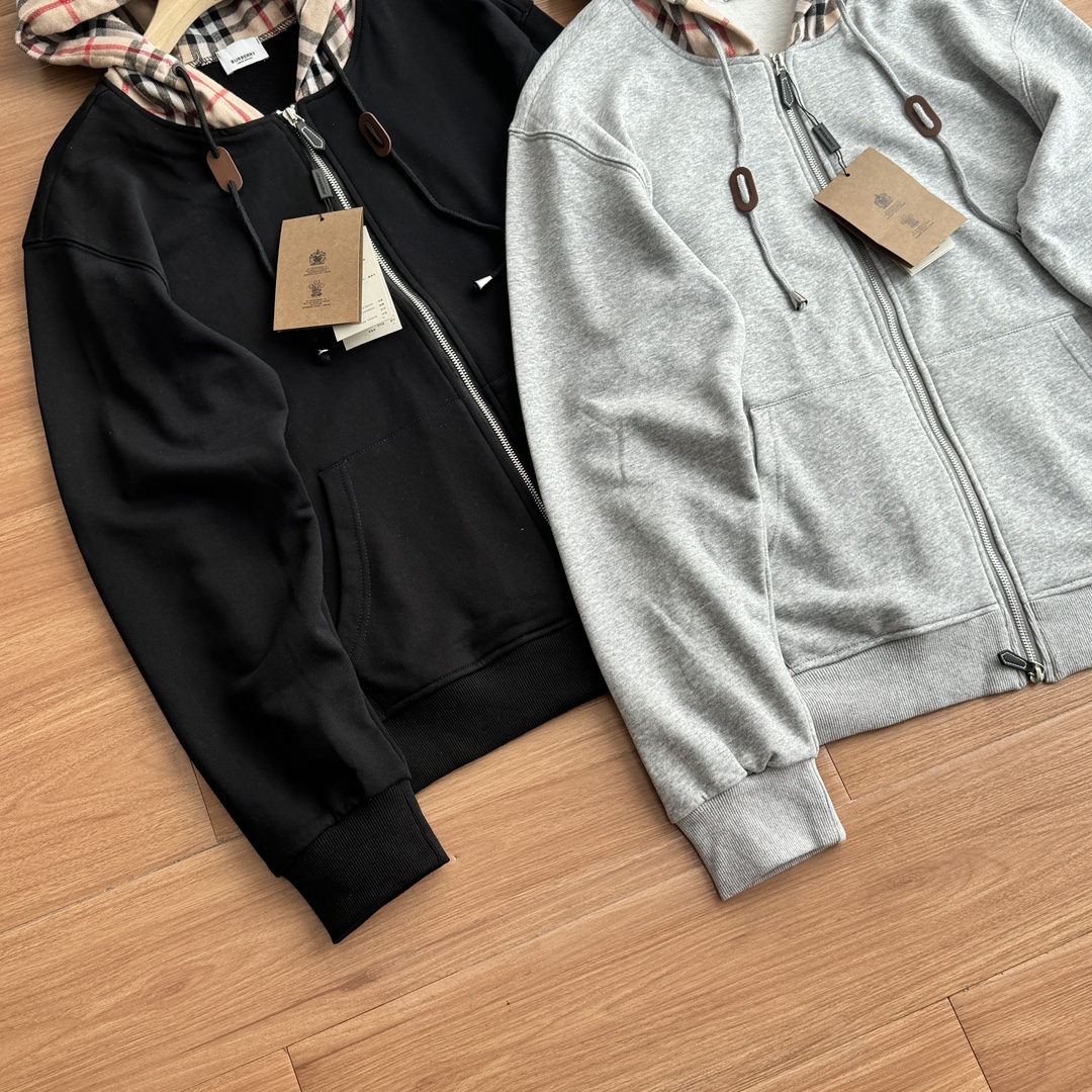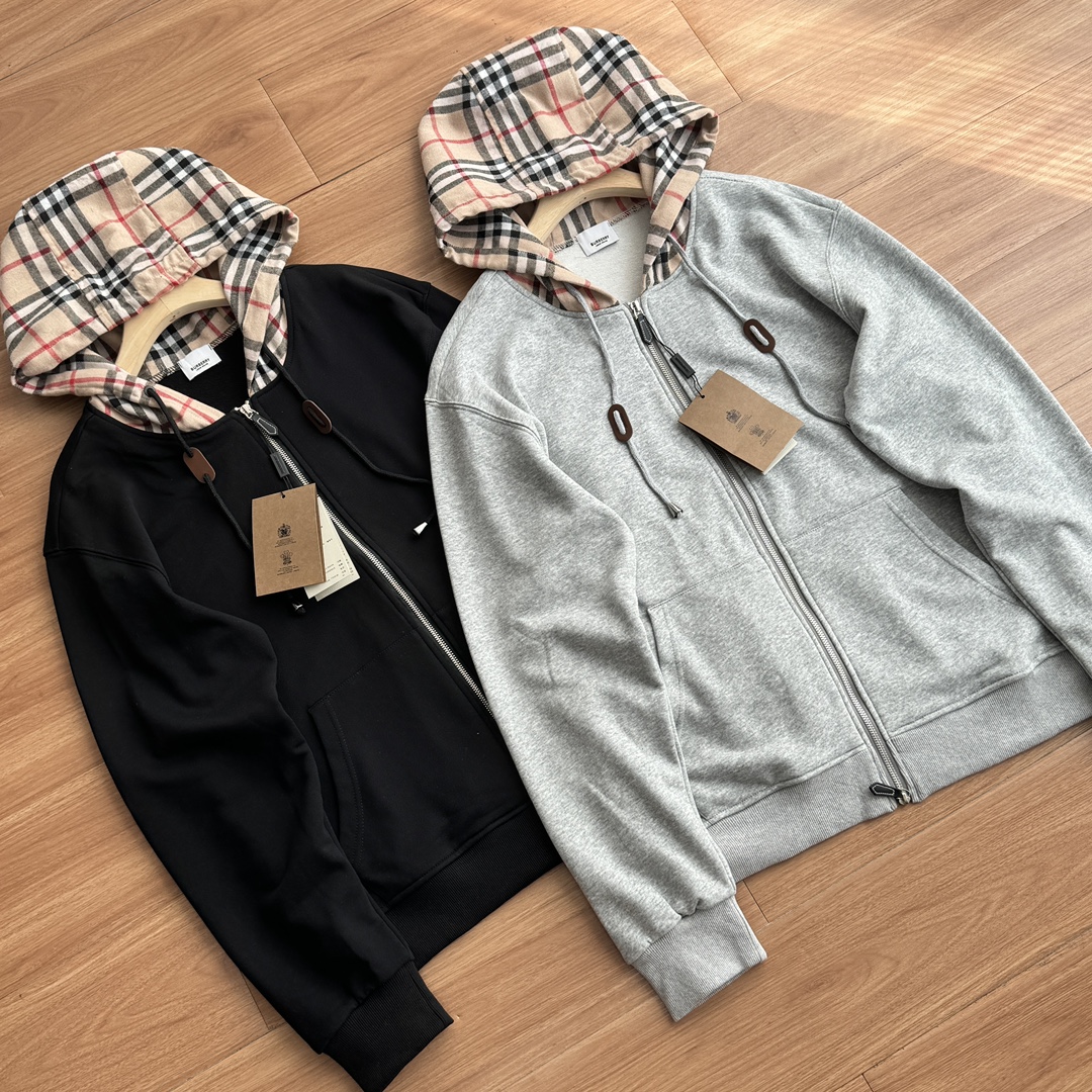 发165💰!秋季最新款B家格纹连帽拉链开衫卫衣外套!代购8000+重磅450克纯棉毛圈面料,亲肤舒适,手感细腻软糯!挺阔有弹力!上身显瘦有型! B家经典格纹样式连帽造型,搭配纯色大身颜色,简约中带着经典味道!帽绳皮标缀饰! 颜色:黑色 灰色 尺码:M到XL 尺码: M-XXL M 衣长70 胸围116袖长64 肩宽53 建议110-140斤 L 衣长72 胸围120 袖长65 肩宽54 建议140-160斤 XL 衣长74 胸围124 袖长66 肩宽55 建议160-180斤