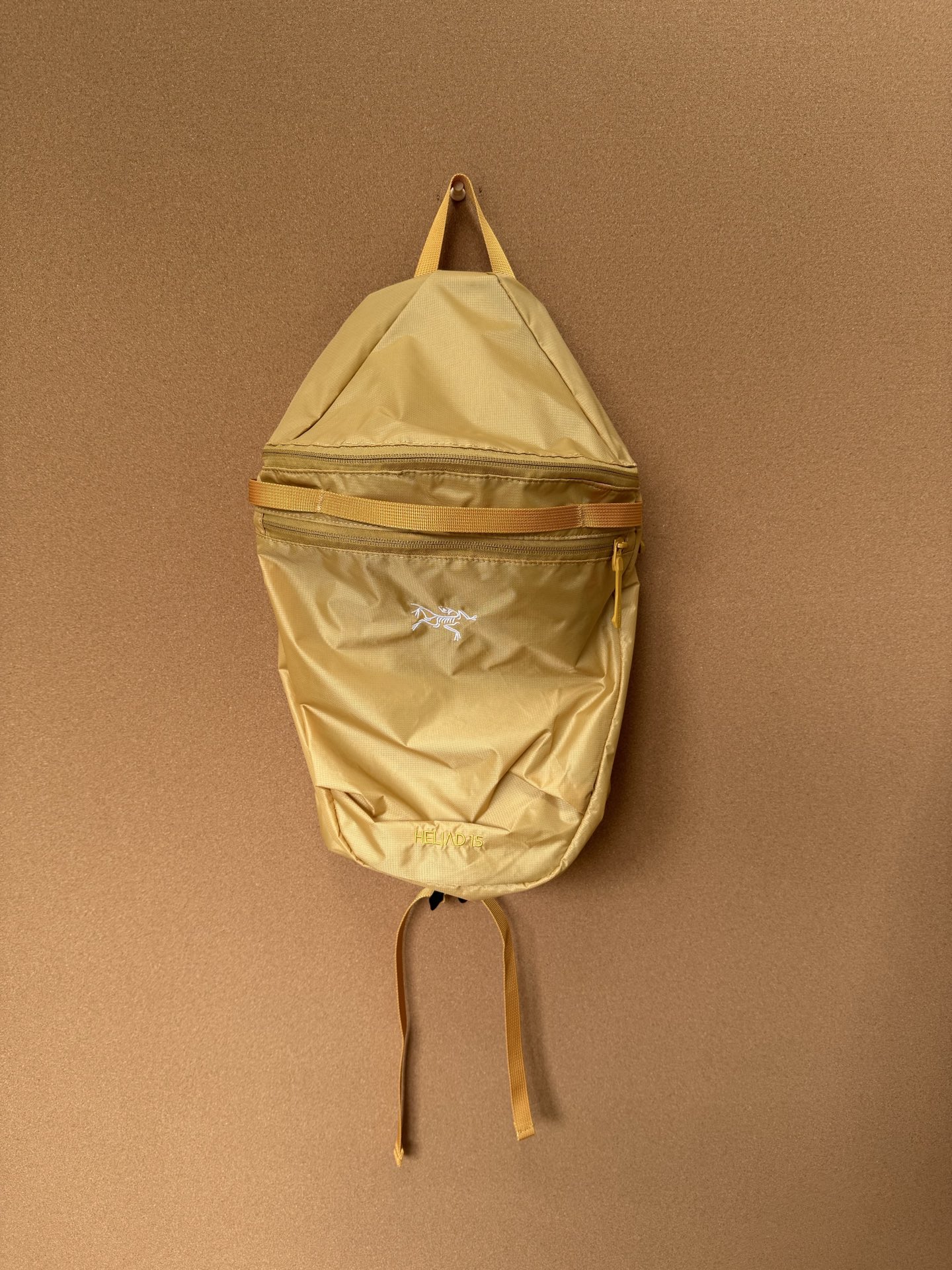 💰125。高版本,区别通货 Arcteryx始祖鸟 HELIAD 15L刺绣徽标双肩包 尺寸:40*25*20cm 颜色:黑色,浅粉,黄色,棕粉,卡其,浅灰,墨绿。 户外多功能登山徒步露营背包,男女同款情侣款,这款又是一款大爆款,夏天超好用的款式!包身采用传统的降落伞防水面料材质,轻便防水手感柔软透气,经典鸟标刺绣是品牌的标配,容量空间也不错日常的随身小物都能装下,自用送闺蜜都炒鸡好!
